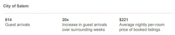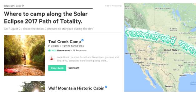 Hipcamp and its sharing-economy ilk are relatively new to the Salem-Keizer area. Lyft and Uber were just introduced there last month—and while Airbnb has been in the area for some time, the city has been keeping an eye on the revenue generated by the app and recently passed new rules requiring Airbnb hosts to obtain proper licenses, and preventing apartment renters from renting out rooms. This will go into effect before eclipse weekend, and Airbnb says the new regulations will make it easier for hosts to get permits—and according to an Airbnb report, 88 percent of those renters over eclipse weekend in Oregon are first-timers. “There are 4,600 booked guest arrivals in cities in the path of the eclipse—5.5x more guest arrivals than the same night on surrounding weeks,” the report reads. “These guest arrivals account for nearly a quarter of guest arrivals in the state the night before the eclipse—leading to the biggest night for Airbnb ever in Oregon. … The average nightly-per-room rate of booked listings in the path of the eclipse is $232.” In Salem, the average is $221 for the night, an exorbitantly high price—but easily more affordable than a hotel room in the area for that weekend. Airbnb says those renting out homes in the path of the eclipse in Oregon will make $1 million that night. This is the most bookings Airbnb has had around a natural phenomenon, and like Hipcamp, the company will have staff ready to assist hosts and guests if need be.