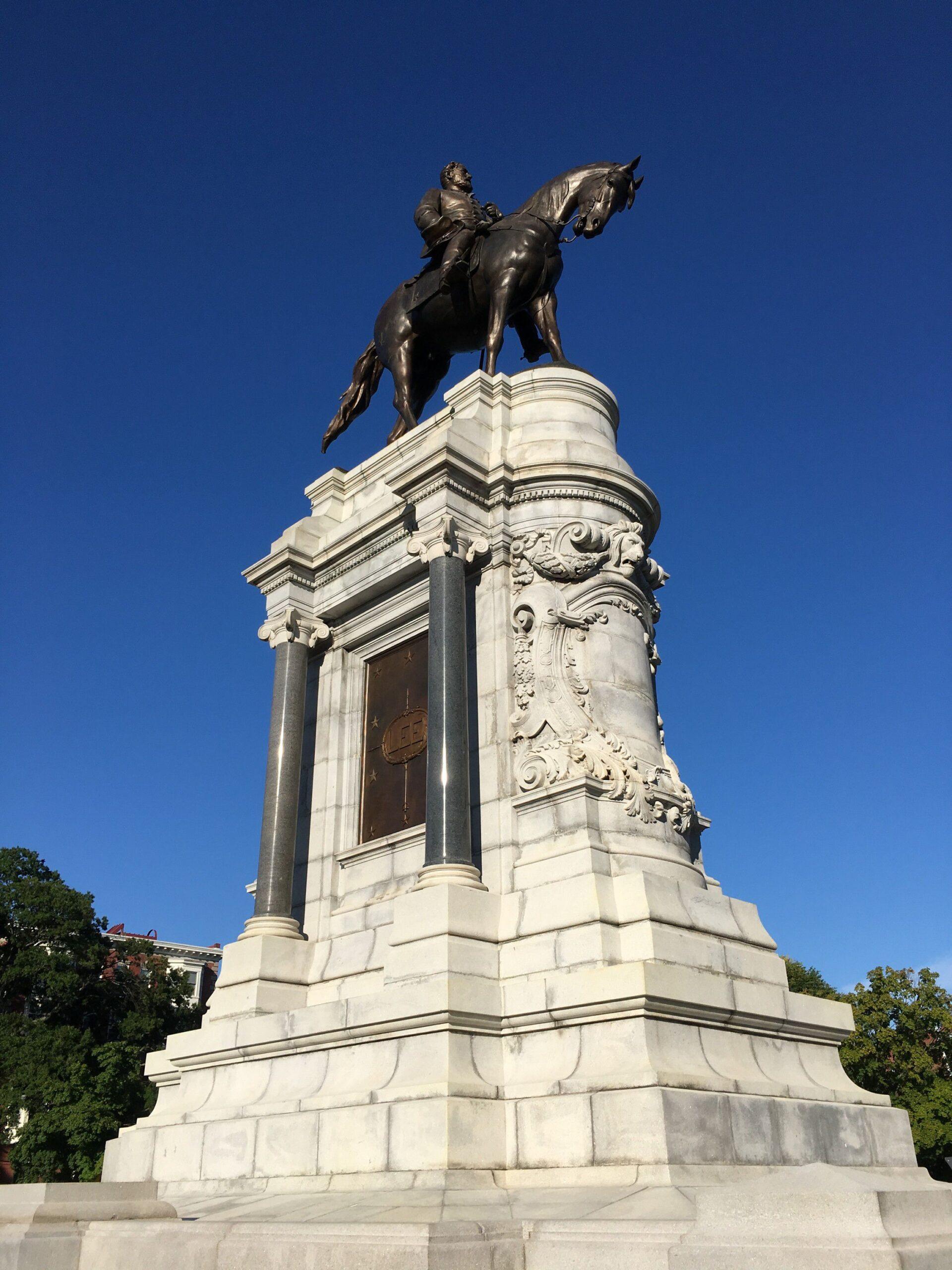 I did not realize how big Robert E. Lee was until I stood in his shadow. He sits in the middle of a well-manicured grassy plot at least a quarter of an acre in size, and is further protected by a traffic circle, ensuring that approaching pedestrians will grasp his stature only by degrees. Bronzed to a skin tone darker than mine, the man is 14 feet tall. He straddles a solemn horse, which grants him an additional 7 feet in height. Man and mount are planted on a granite pedestal that stretches 40 feet into the sky. From his perch in the heart of Richmond, Virginia, Lee gazes south toward the country he fought for, but the features of his face are too close to the heavens to be clearly discerned from the ground.