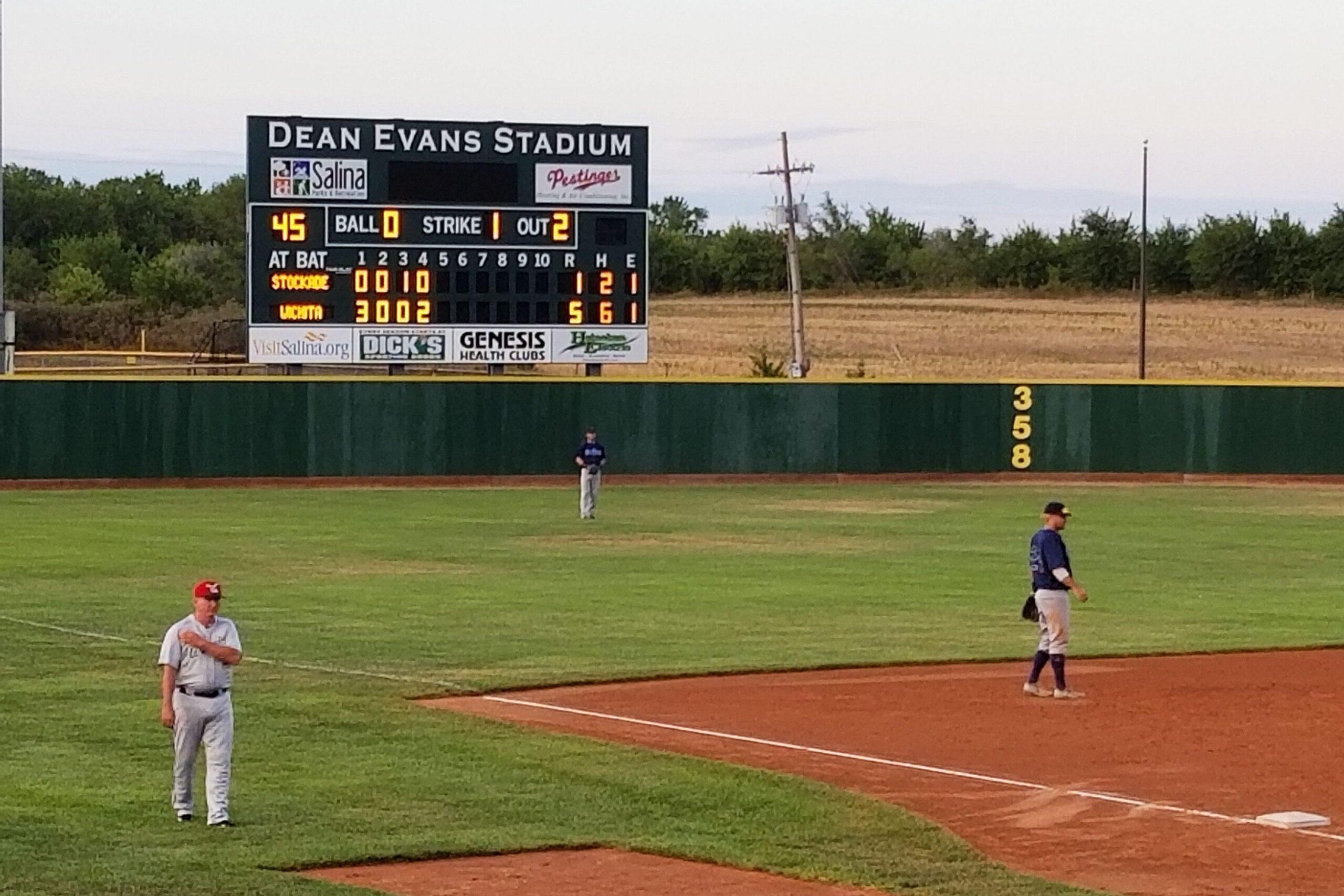 Dunn had first formed a team called the Stockade in 2016, naming them after a fortified barrier that had protected the town not long after its founding in 1858. That incarnation of the Stockade, which was also created for scheduling purposes, had also been a traveling team that had only 10 dates in Salina because of conflicts at Dean Evans, but it had played in the Pecos League. In that environment, the Stockade finished the shorter Pecos League season 29–36, only the fourth-worst record in what was then a 10-team league. In February 2017, though, that team was disbanded, done in both by geographic isolation resulting from the folding of other nearby franchises and by the departure of a former Stockade coach who took most of the players from 2016 with him to a team in Garden City, Kansas, leaving many spurned Salina supporters unwilling to offer their services as host families again. The 2017 Stockade are an almost entirely different entity: Only a few players from the 2016 team have spent any time on the 2017 roster, and all of them were either early cuts or late additions this season.