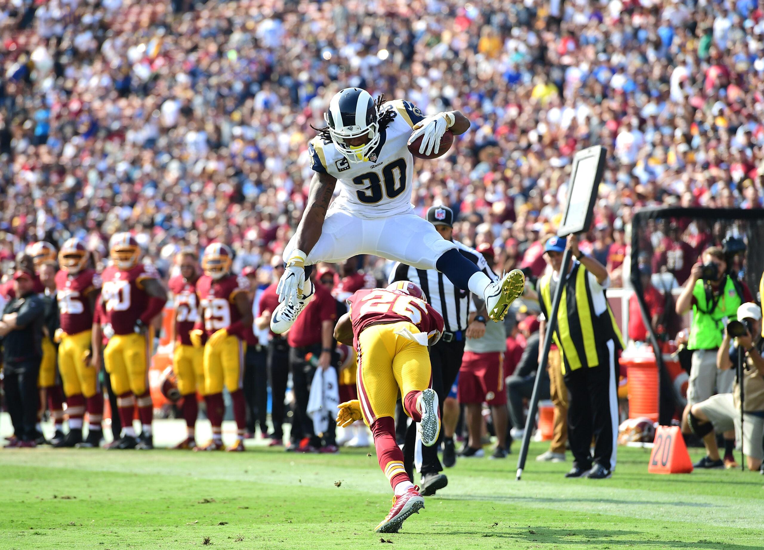 So even though the Rams lost a wild one to Washington on Sunday, 27-20, Gurley looking like his rookie-year self served as a very bright silver lining. Gurley hurdled over multiple defenders and ran through and around the Washington defense to the tune of 88 yards and a touchdown on the ground, with another 48 yards and a score through the air.