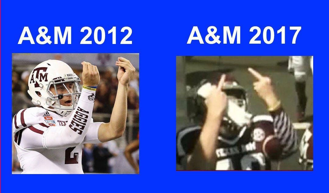 It’s been quite the turnaround for A&M under head coach Kevin Sumlin: The Aggies went 11–2 with a Cotton Bowl win and had a Heisman winner in his first season as head coach. This year, they have blown a 34-point lead and struggled to beat Nicholls and Louisiana-Lafayette.