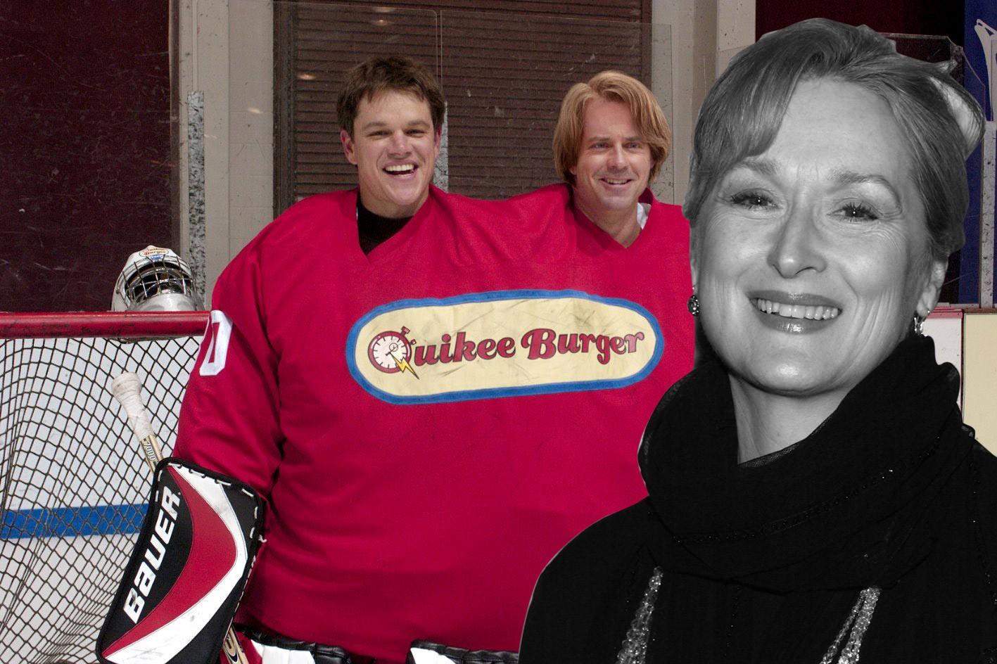 If you watched the montage of classic Streep performances at this year’s Globes, you might not know this, because the Hollywood Foreign Press Association unjustly ignored Stuck on You. The Farrelly brothers weren’t always so grossly forsaken. They were America’s profitable, profane comedy sweethearts for most of the ’90s, starting with 1994’s Dumb & Dumber and reaching an apex with 1998’s There’s Something About Mary. In the early 2000s, they didn’t fall off so much as skydive into a jar of Something About Mary gel, and by the time Stuck on You came around, their fart jokes stank and their star was tarnished. But they clearly had residual goodwill with some A-list agents, because they had enough cachet to convince Streep to come aboard, and not for some 10-second courtesy cameo. She has lines. She has a story arc. In addition to playing her regular self, she also plays herself playing Bonnie in a New England–based musical retelling of Bonnie and Clyde.