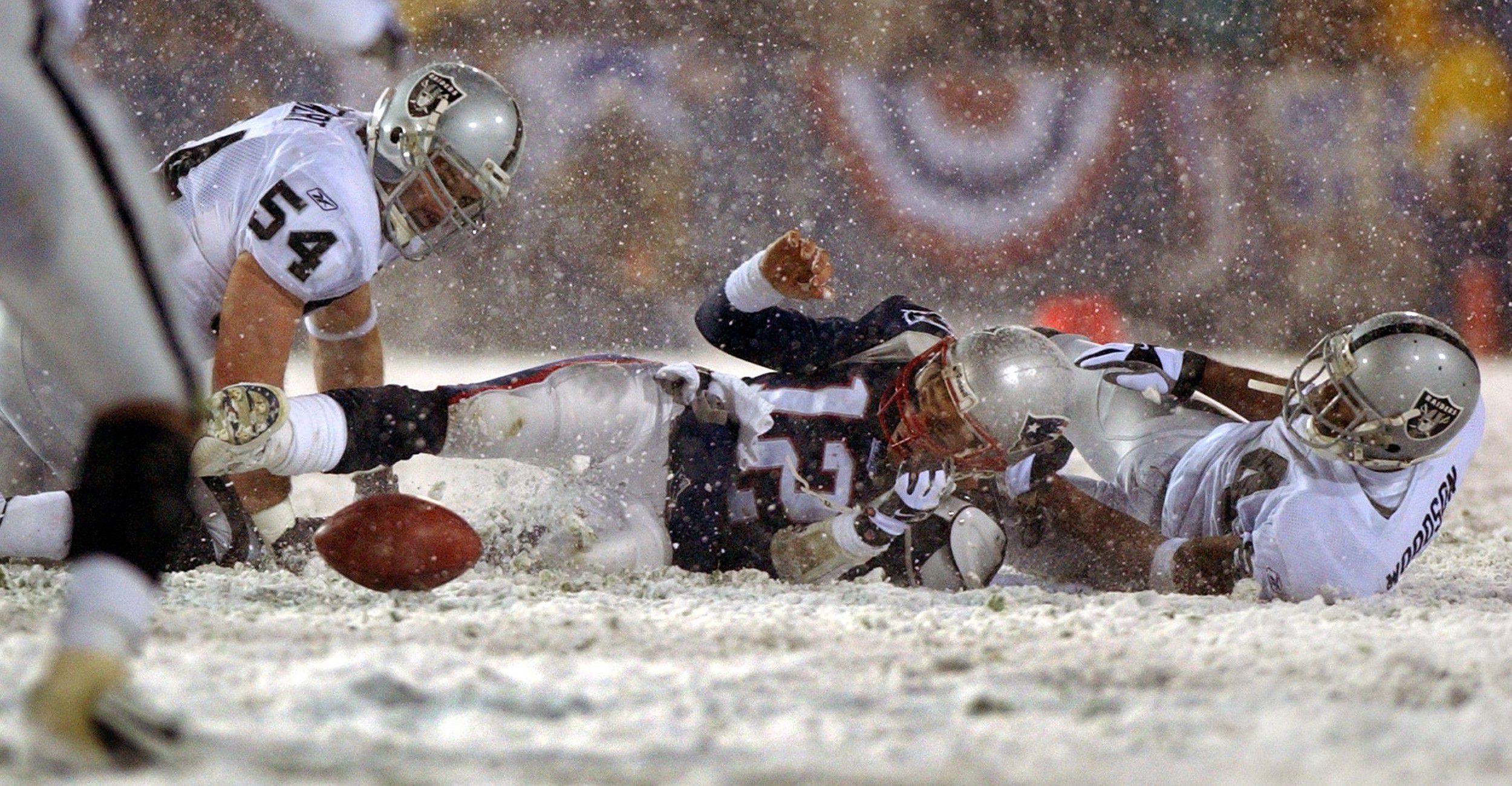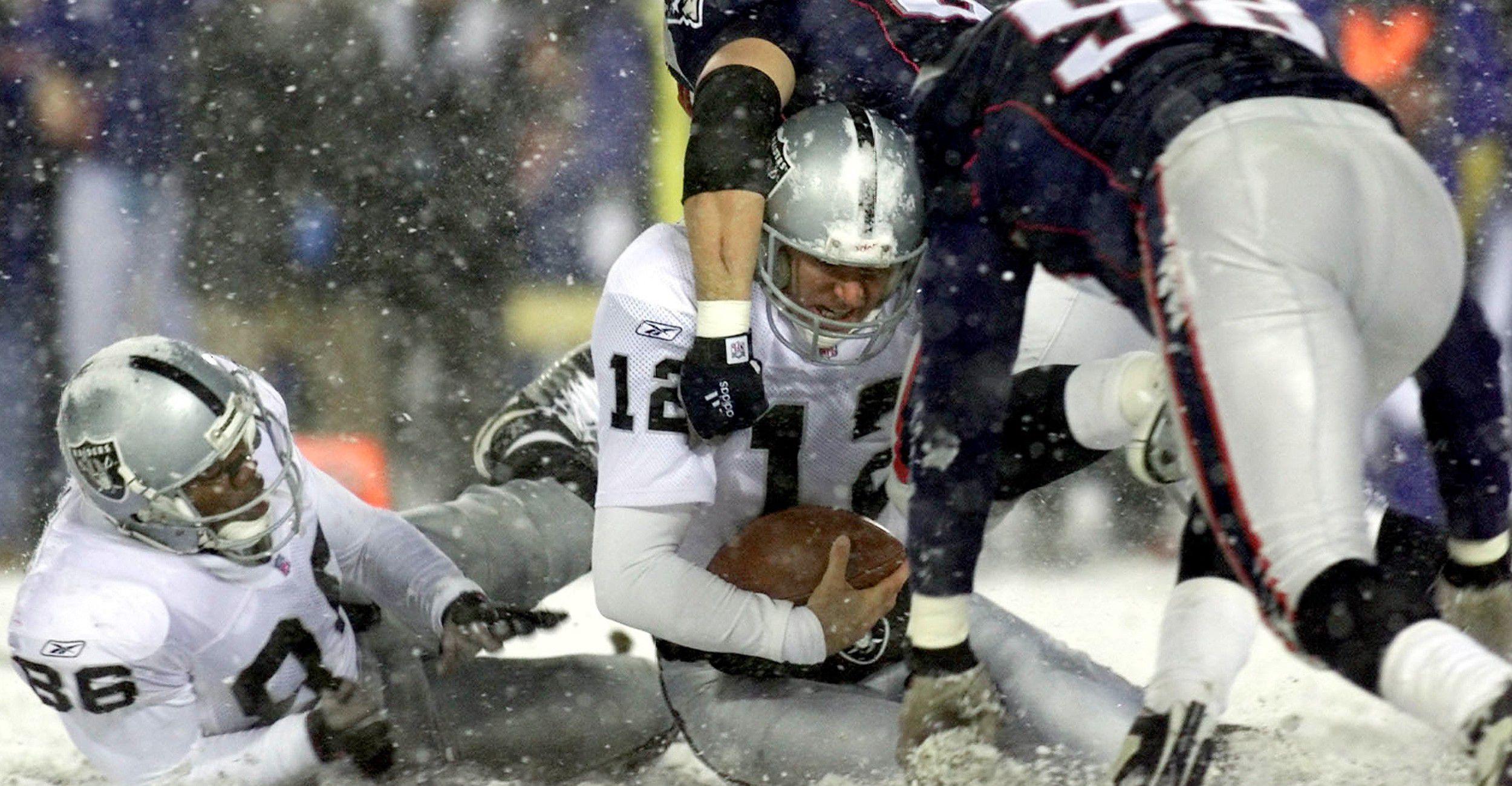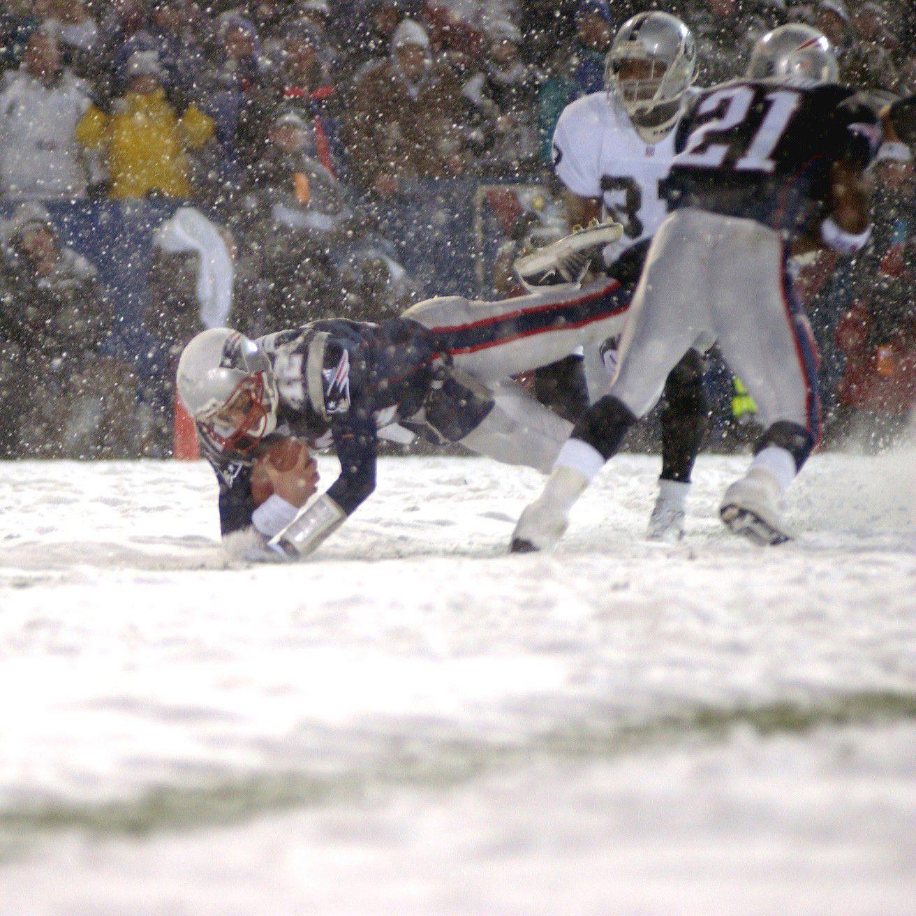 The game, known as both the Snow Bowl (for that copious and unceasing precipitation) and the Tuck Rule Game (for the enduringly controversial call that ultimately swung the contest toward the Patriots, who won 16–13 in overtime), would alter the futures of both franchises. On this night, the Patriots, under Brady, head coach Bill Belichick, and owner Bob Kraft, began to blossom into a juggernaut; on this night, the Jon Gruden era in Oakland skidded to an abrupt end, setting the once-proud Raiders on the path to devolving into a laughingstock. Here, too, began the notion of football as a sport guided by technology, with referees and replay officials shifting the momentum of a game based on the minutiae of an esoteric and often confusing rule book.