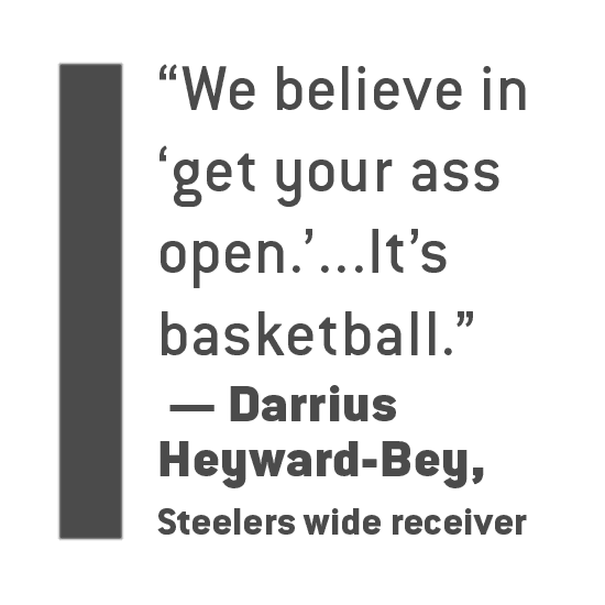“I tell corners — all playing corner is now is basketball,” says former Steelers corner and current NFL Network analyst Ike Taylor. Taylor, who went to college to play basketball but ended up walking on to the Louisiana–Lafayette football team instead, says he’s always imagined himself guarding players as if there were a hoop behind him, but that this new offensive era has forced nearly everyone to think that way too. “You only have 5 yards to do your damage,” Taylor says, referring to the distance from the line of scrimmage in which defensive backs can be physical with receivers. “After that, it’s not letting the guard get to the basket.”