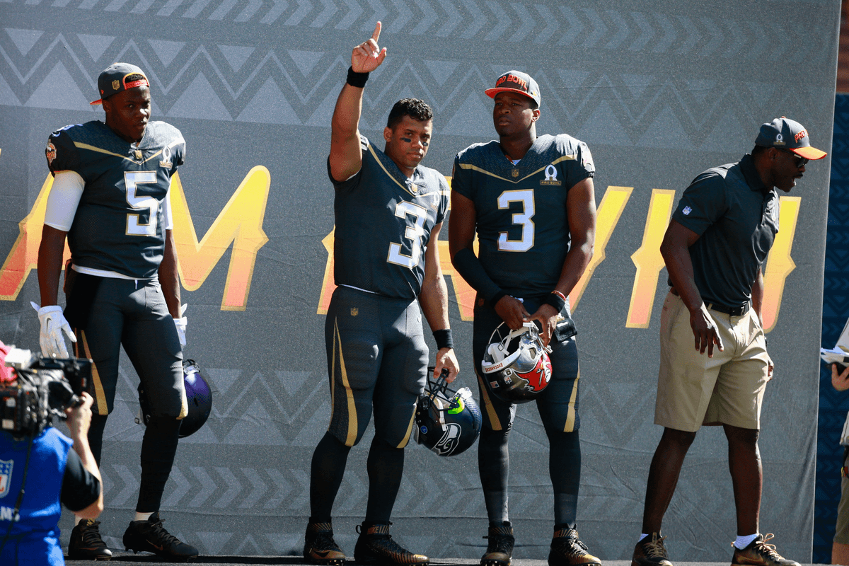 I don’t know if there’s a way to pick teams that could make the Pro Bowl more interesting. Splitting players by birthplace, east vs. west? Maybe players with three or fewer years of experience vs. players with three or more? Maybe a fantasy-draft concept with current players picking? That could be fun — it would feel like a schoolyard and could potentially cause beef over who picked whom. Maybe the league should just ditch the whole concept of the game and go 7-on-7, similar to what the NHL did by turning its games into a 3-on-3 format?