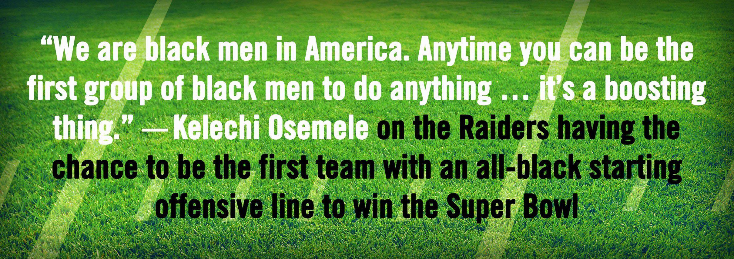 “We are black men in America,” Osemele says. “Any time you can be the first group of black men to do anything … it’s a boosting thing.”