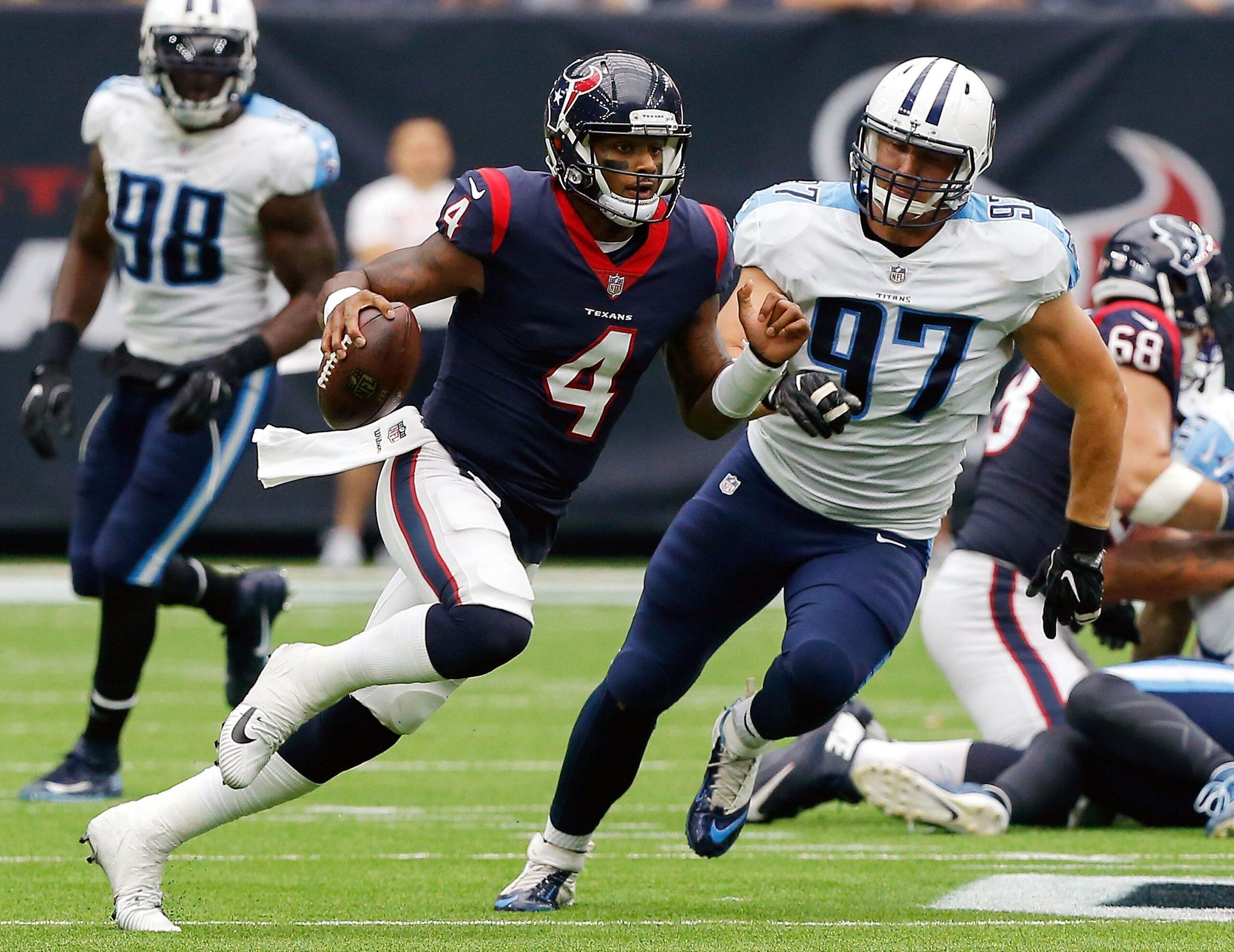 1. It’s time to get excited about Deshaun Watson. Houston’s rookie quarterback tore up the Titans defense Sunday, going 25-of-34 passing for 283 yards with four touchdowns and adding another 24 rushing yards with a score in the Texans’ 57-14 rout. A well-tailored Houston game plan that included plenty of play action and some stupefying Tennessee miscues both went a long way in pumping up Watson’s numbers, but the Clemson product also strung together his share of tough throws.