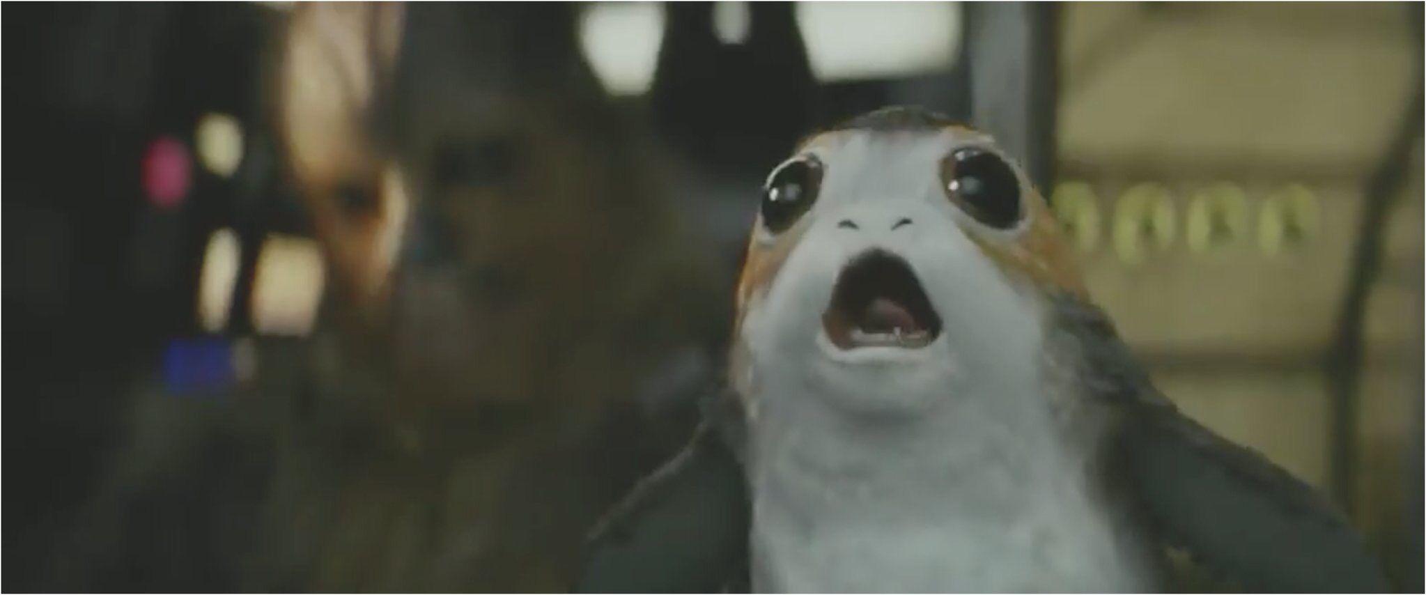 Samman: Some of my colleagues will probably bad-mouth the porg—the little furry thing screaming in unison with Chewy on the Falcon. Those people hate fun. Porgs are dope, and aren’t concerning in the slightest. Something that is concerning? How about that snippet when Finn looks like he’s been taken prisoner and is being led through a hallway by some troopers. A central hero being captured is concerning.