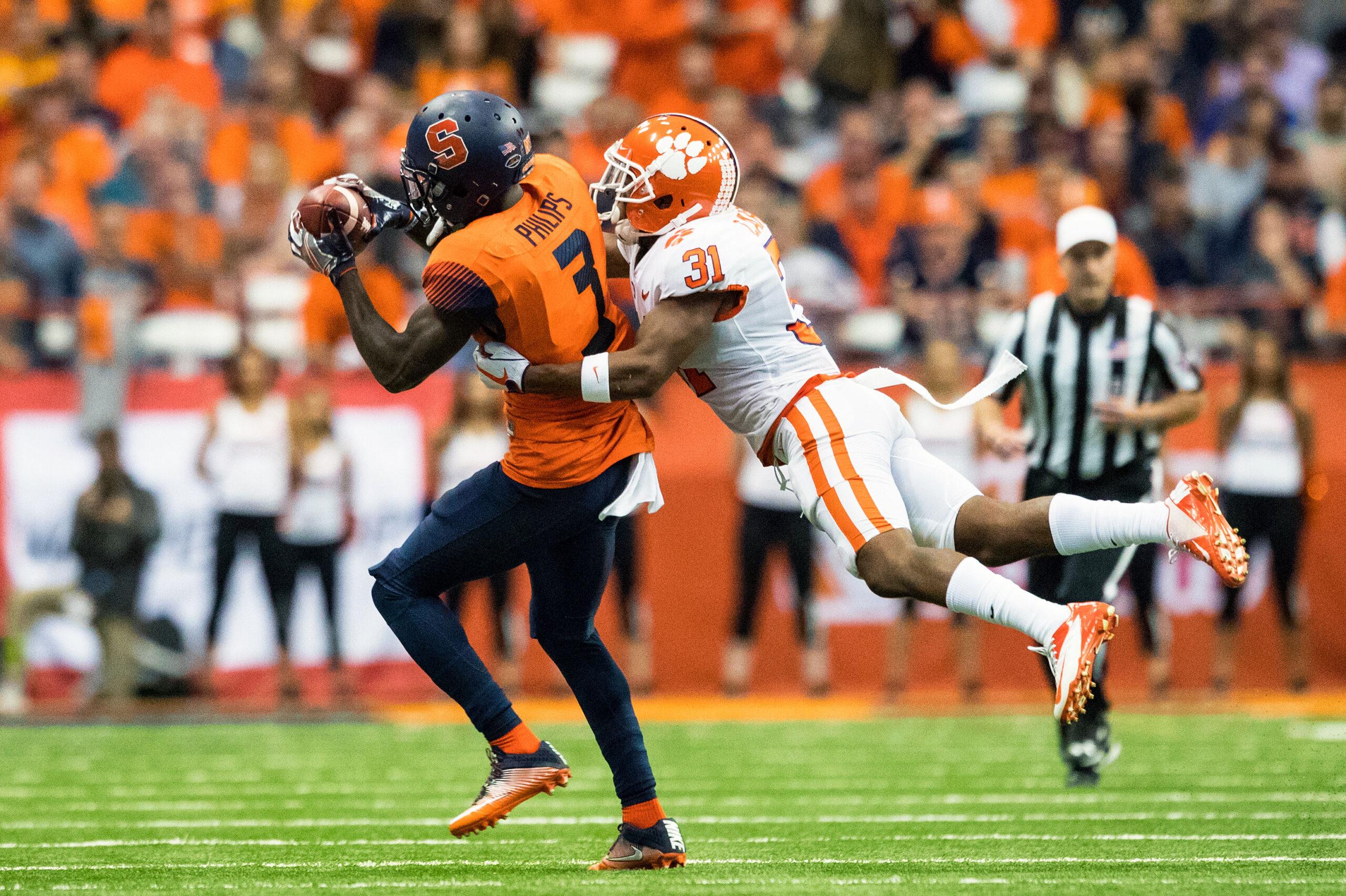 Syracuse coach Dino Babers sustains himself on two things: run-pass options and motivational speeches. Clemson couldn’t stop the first, and that led to the latter. (That speech is great on its own, although I recommend watching the prequel to truly understand the story lines.)