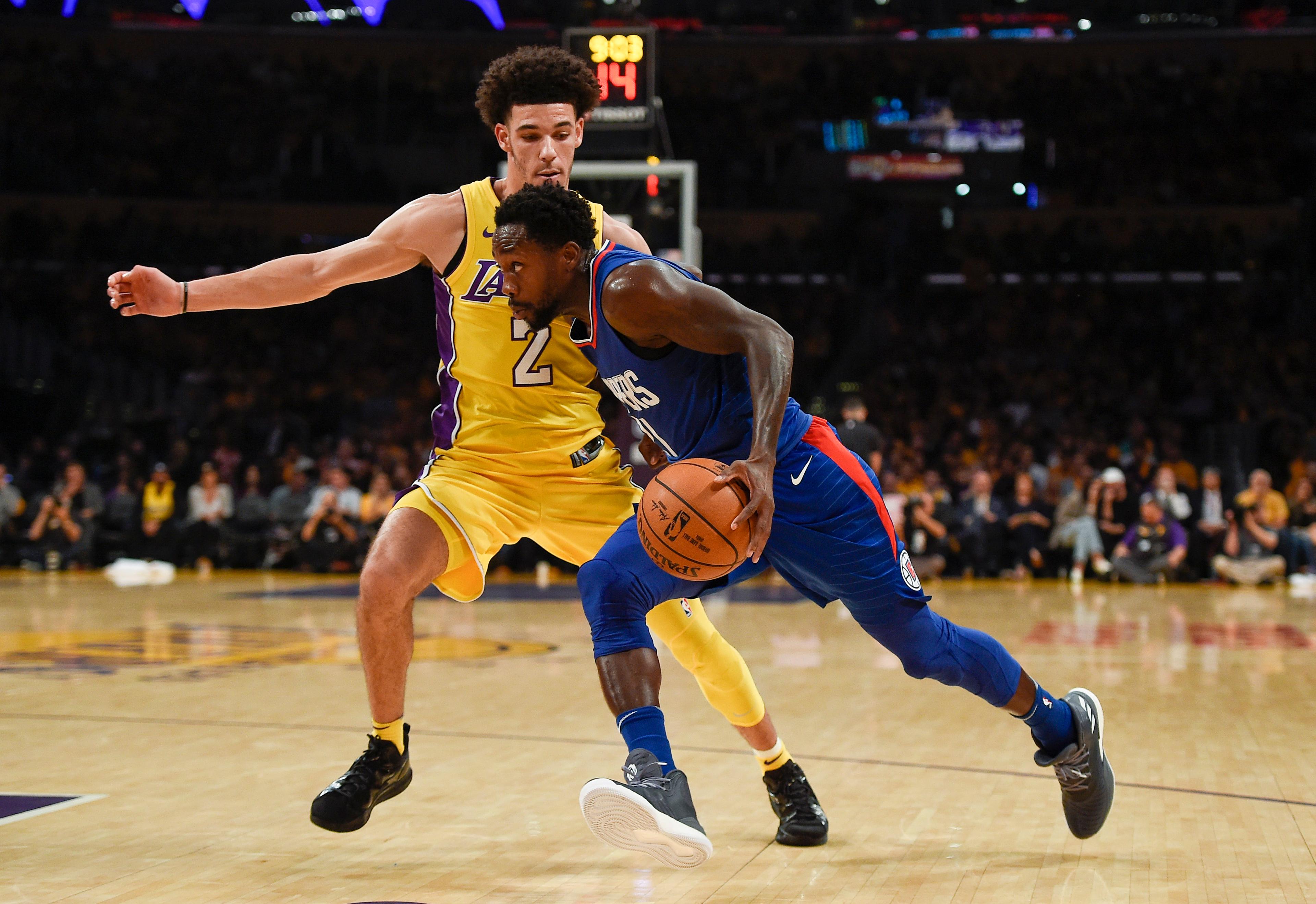 Almost from the jump, Beverley barely let Ball corral inbound passes. Beverley body-checked Ball onto the Staples Center floor almost immediately after the rookie crossed half court, punctuating it with a few choice words. After swiping the ball from Ball with four minutes left in the second, Beverley shouted “first team!” three times in a row following his fast-break layup, in reference to his place on last season’s All-Defensive team, and held up his index finger.