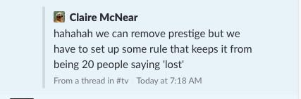 John Gonzalez: I lived in Boston when Lost hit the air and consumed the collective pop culture conversation. Appointment viewing was still a thing then. I gathered with my friends/coworkers each week in a tiny Cambridge apartment to watch the show, after which we would ask each other all sorts of questions about hatches and polar bears and THE NUMBERS. We went looking for Easter eggs on semi-affiliated companion websites that popped up at the time. We shared theories on potential source material ranging from Slaughterhouse-Five to Alice in Wonderland. No one had any idea WTF was happening. That went on for years. Years. We watched the whole stupid show together—and then a lot of us lost touch. I will forever blame Damon Lindelof and his goddamn statue. Anyway, Claire said it best in our Slack: