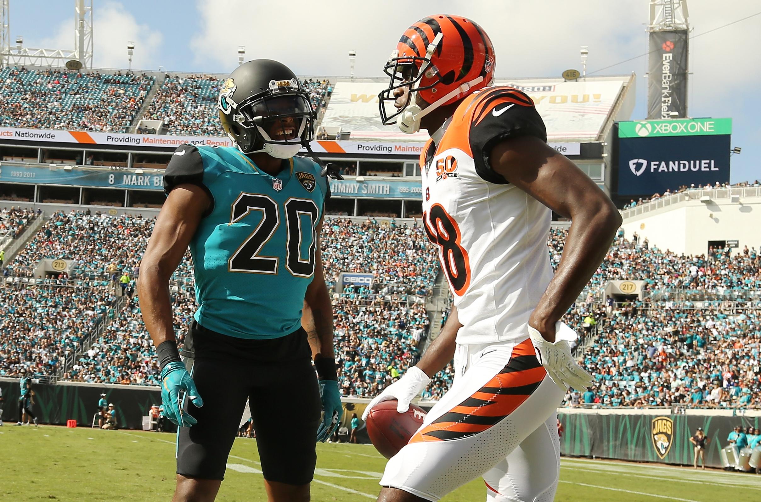 Late in the second quarter of the Jacksonville-Cincinnati game on Sunday, Bengals wide receiver A.J. Green and Jaguars defensive back Jalen Ramsey were both ejected for fighting.