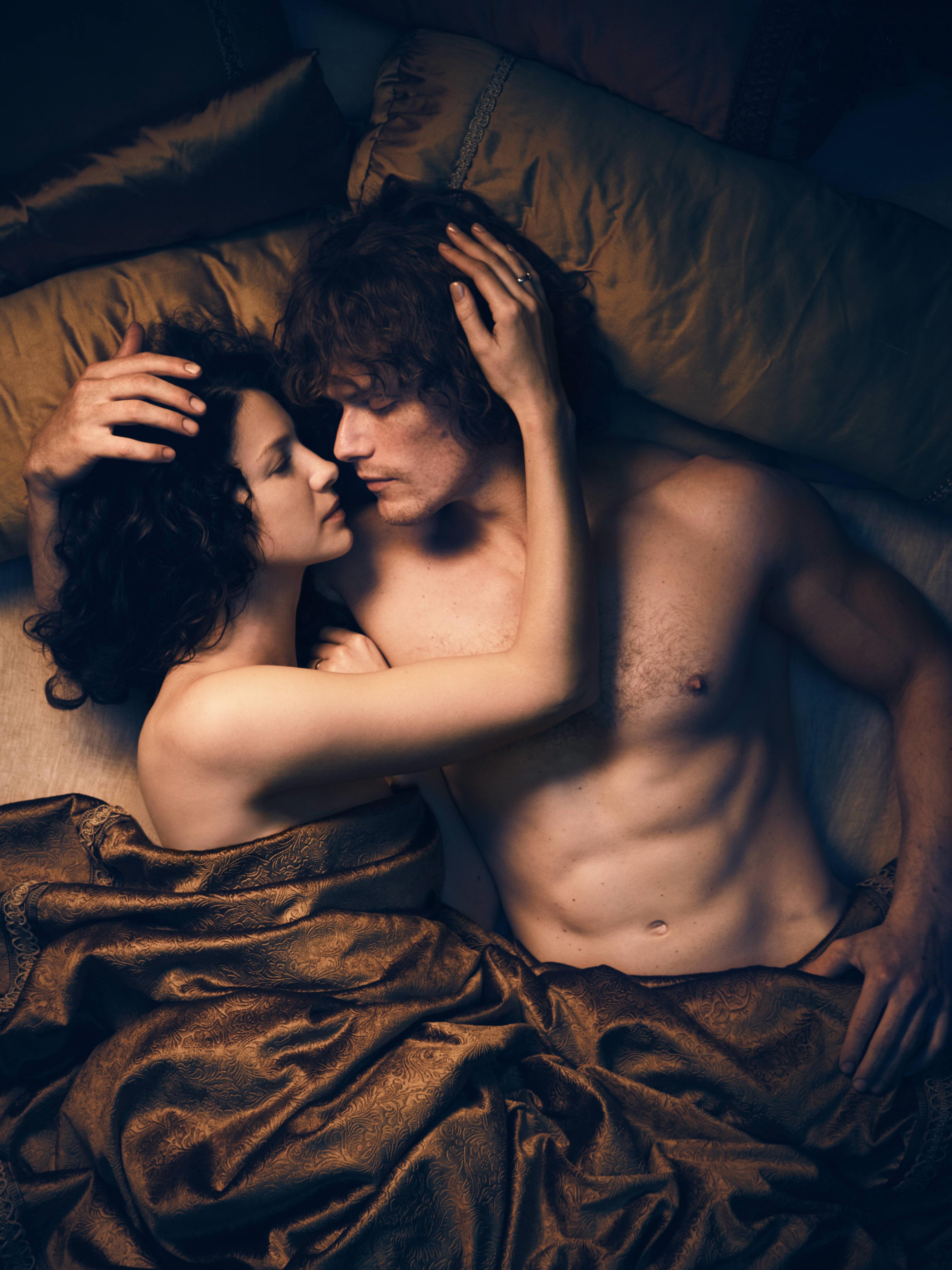 Aware that the time jump was looming, the producers started doing screen tests last season with Balfe and Heughan, in consultation with head of hair and makeup Annie McEwan, who had worked on Season 4 of Game of Thrones before joining the Outlander crew. After experimenting with various looks, the creative team decided, essentially, that both Balfe and Heughan were too hot to convincingly tamper with by obscuring their actual features. “We have two actors who happen to be incredibly beautiful people,” Davis says. “It is hard to make them look bad, damn them.” Originally, the pair’s first post-reunion sex scene featured a reference to stretch marks, but the writers lost that line from the script, Davis says, when the makeup crew informed them that stretch marks “don't read very well on camera.”