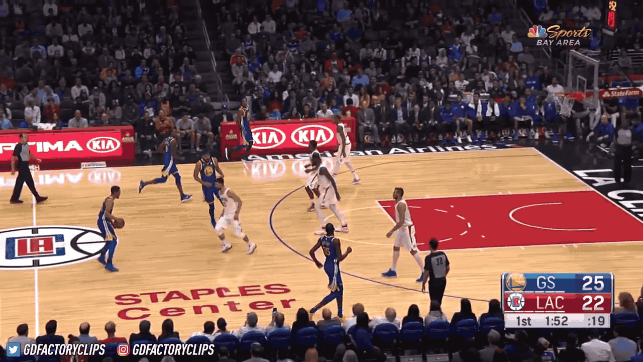 In one motion, Curry is somehow able to create space with his shooting range and also create an easy look at the basket.
