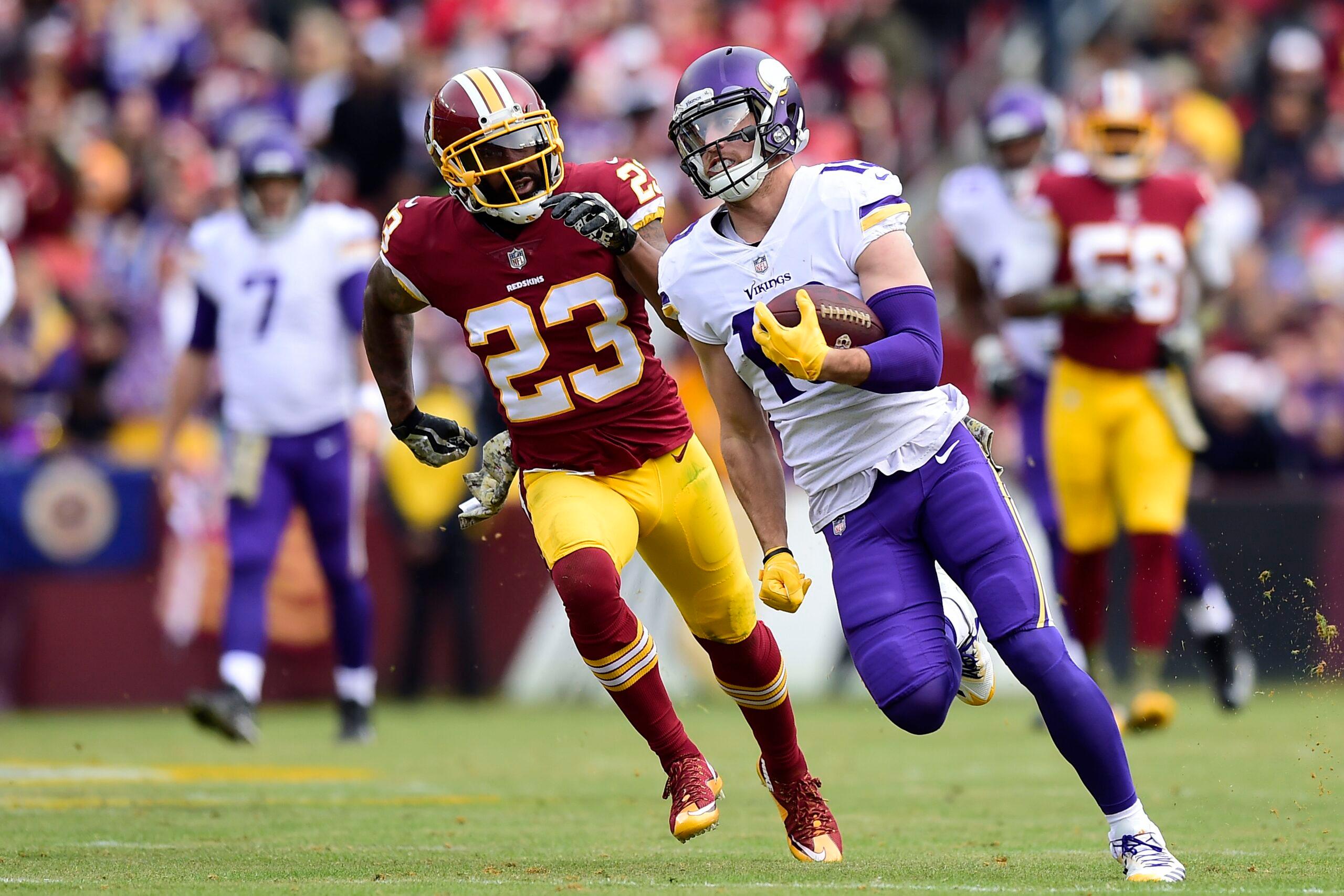 The Vikings’ toughest call down the stretch—and the one that could define their season—will be whether they choose to roll with Keenum, who threw four touchdown passes in Washington, or Bridgewater under center moving forward. The sight of Bridgewater crying tears of joy as he sat on the bench, not even 15 months removed from a gruesome knee injury that some thought might end his career, was one of the best moments of this NFL season. And the rumblings out of Minnesota are that his return could be more than just a feel-good story. Even with the success that the Vikings have found on offense, Fox’s Jay Glazer reported Sunday that they are mulling a quarterback change. Keenum has performed admirably since taking the reins in Week 2, but the 25-year-old Bridgewater remains the franchise’s quarterback of the future, and Keenum is still prone to baffling decision-making, like on his two second-half interceptions to D.J. Swearinger that kept Washington in Sunday’s game.
