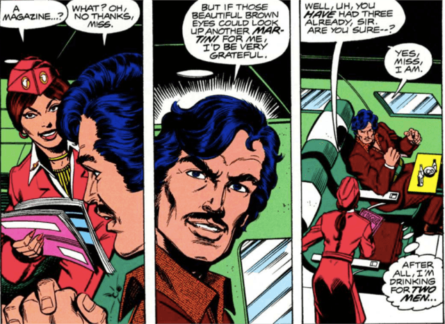 This is probably the most obvious one. Assuming Robert Downey Jr. grows tired of pairing sneakers with suits and eventually begins to hate money, we’ll need some sort of grand send-off. Or at least the illusion of one, like James Mangold and Logan did for Hugh Jackman. Demon in a Bottle is a nine-part series that was originally published in 1979, when Nick Fury was still white and not Samuel L. Jackson. Over the course of the series, Iron Man decides that he will henceforth only be Iron Man, and never again Tony Stark, whose life, by this time, had become too unfulfilled and lonely and torturous to exist alongside his alter ego. Naturally, Stark drinks a lot, because he feels he has to. He drinks on a hotel bed; slumped against a wall; in his Iron Man suit; while aghast at the sight of himself in a mirror; and on a plane, to name a few of many instances. This is from the very second page of the first issue.
