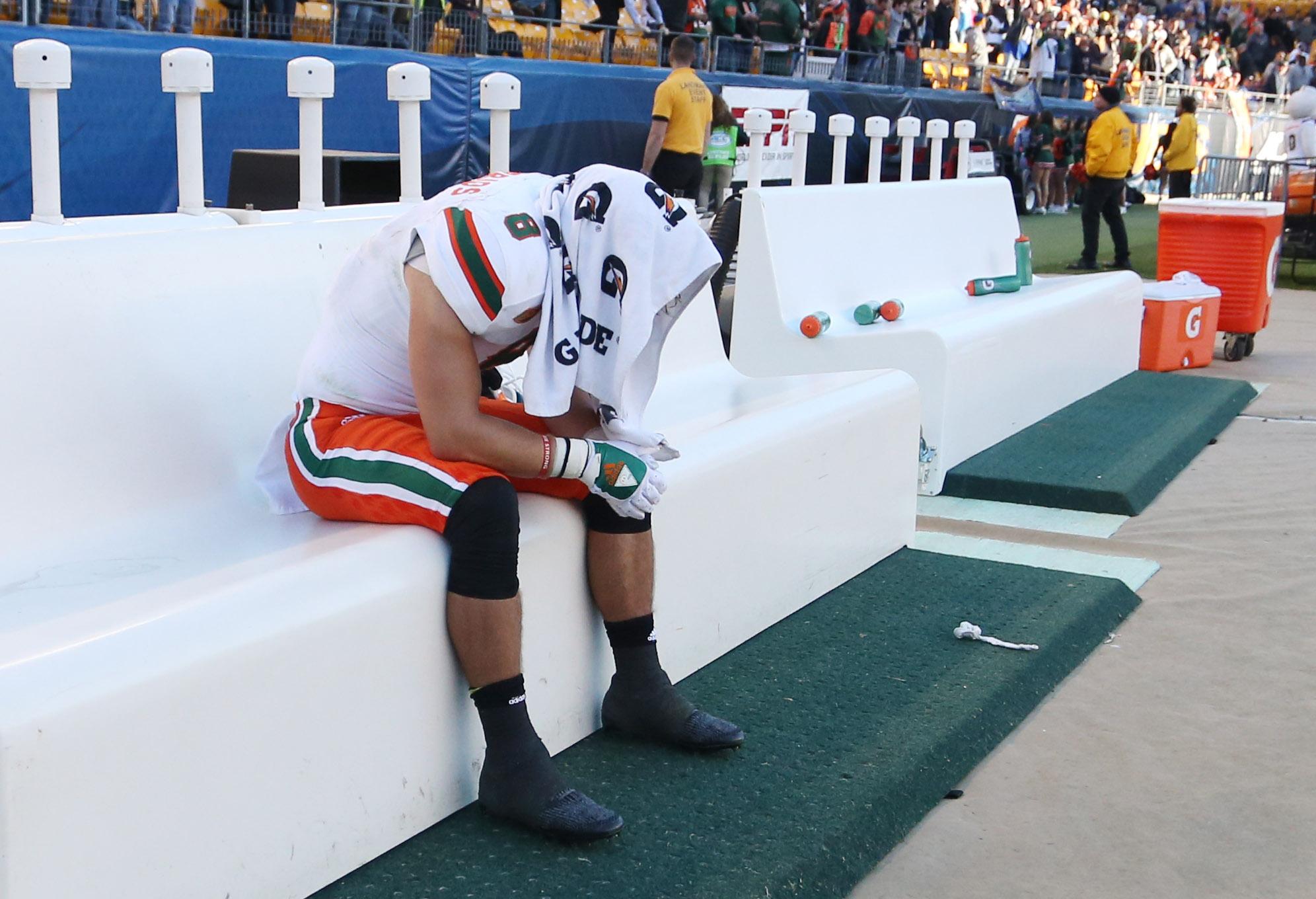 Rosier’s poor play caused Richt to go away from his starting quarterback, inserting sophomore Evan Shirreffs in the fourth quarter with the Hurricanes down 10. It turned out to be a questionable move: Shirreffs nearly threw a pick and was sacked as Miami went three-and-out. It was a wasted drive that left Rosier on the sideline in search of a spark that didn’t come. Miami struck late as Rosier hit Braxton Berrios for a long touchdown with just under three minutes left. The Hurricanes recovered the ensuing onside kick, but Miami's last chance fell short as Pitt senior Avonte Maddox strip-sacked Rosier and the Panthers recovered.