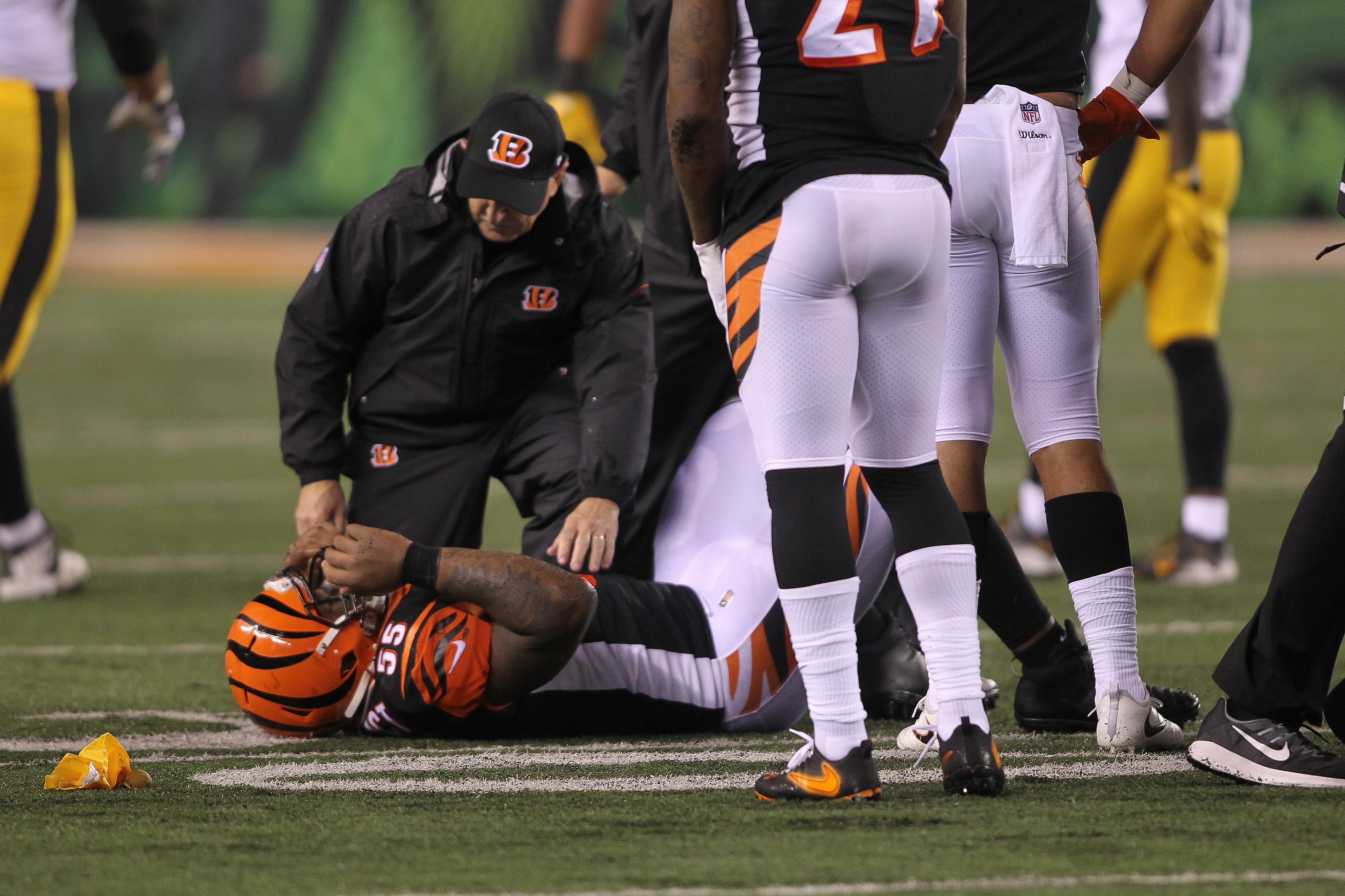 In the second quarter, Bengals running back Joe Mixon took a first-and-10 screen pass for 8 yards before a helmet-to-helmet collision with two defenders. Mixon collapsed to the ground and lay motionless until trainers tended to him.