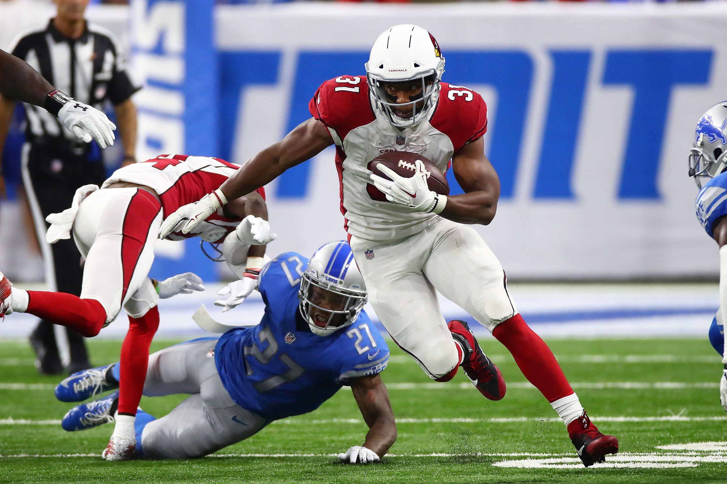 One of the first big blows to both real and fantasy football teams this fall was the injury to Cardinals running back David Johnson, who dislocated his wrist during a Week 1 loss to the Lions. Arizona’s star played just 46 snaps before taking a helmet to his left arm on a deep pass against Detroit, instantly ending his season. Losing a player with Johnson’s talent would be tough for most teams to overcome, but it’s proved especially brutal for an offense that relied on him to do a little of everything. Johnson’s 2,118 yards from scrimmage in 2016 made up more than 36 percent of Arizona’s total. His 120 targets were the second-most on the team behind Larry Fitzgerald, and his 80 receptions were the most among running backs leaguewide.