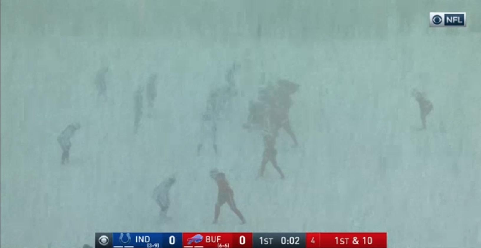 Thanks to the lake-effect snow in Buffalo, this is what the game looks like on the CBS broadcast.