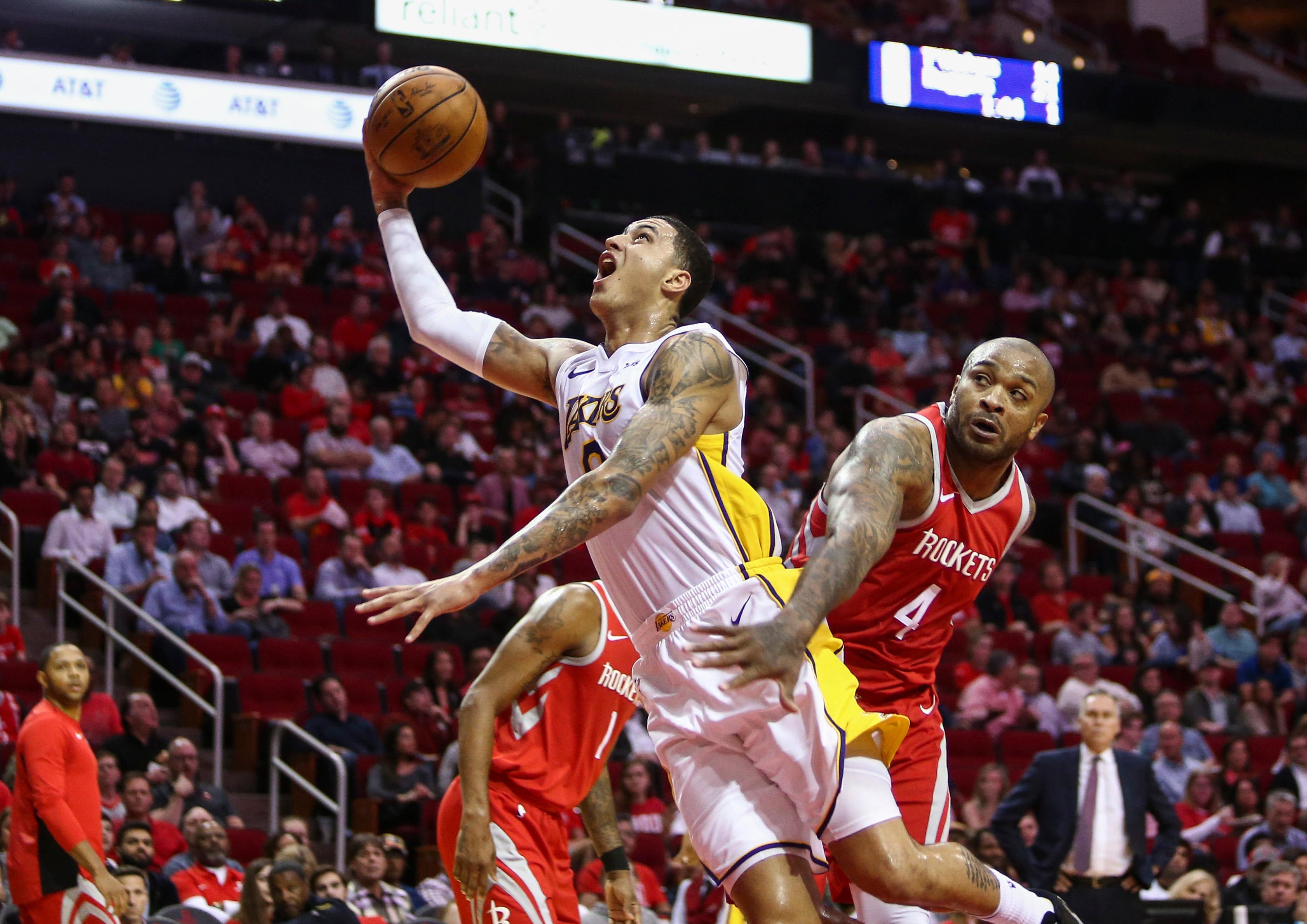 In the first half of the Lakers’ contest against Houston, Kuzma was perfect from the field, going 9-for-9 overall and 6-for-6 from deep. He ended the night with a career-high 38 points on 17 shots to go with seven rebounds and four assists. Swoon.