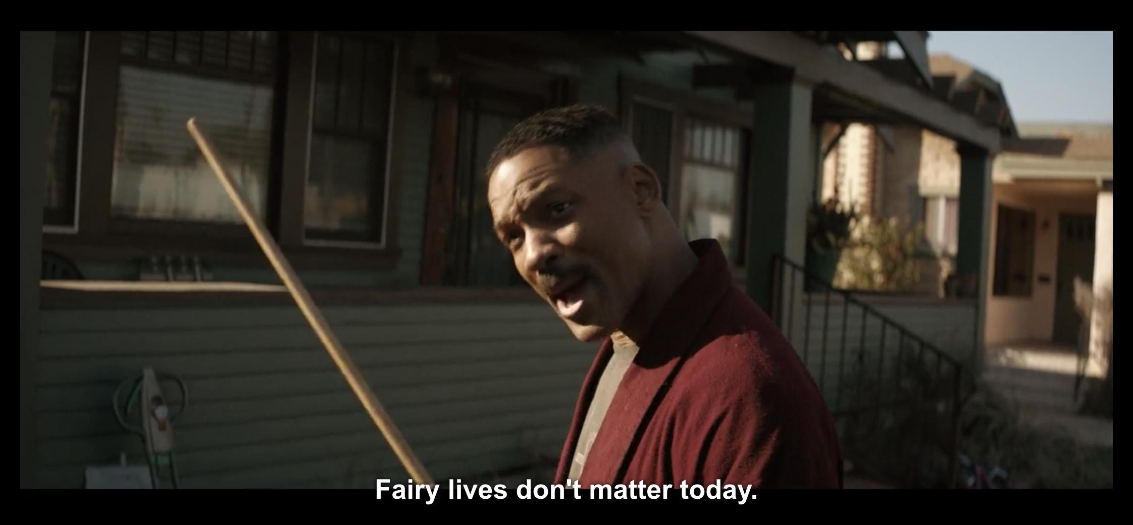 24. Later in Bright, Nick and Daryl investigate a crime scene where it seems like some magic went down with a wand. Here’s the thing about wands: They can only be used by elves who are “Brights,” and a human “Bright” is supposed to be super rare, like one in a million. Despite this, there are many people — including an entire gang and its wheelchair-bound leader — who want to take the wand. So, is everyone risking their lives because of lazy plotting, or is this a sobering commentary on the societal plight facing most people in the city, that they’d rather risk their lives for the infinitesimal chance of wielding a wand than continue their meandering existence? Based on everything else I’ve seen, I’m going with the former.