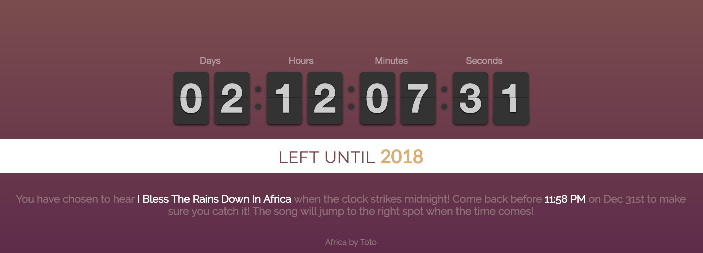 In addition to clever twists (see above) on the meme, two Waterloo-based software developers decided to make a single-serve website so you can create your own perfect beat drop at midnight on New Year’s. Ulkar and her husband Azhdar (who asked that their last names be withheld “just because of the nature of the internet”) launched Enter2018Right, a site that allows you to enter any song you want and, if you keep the page (or tab) open, it will automatically play that song at the requisite hour in order for the perfect midnight moment. (I have obviously chosen “Africa” by Toto. To each their own!)
