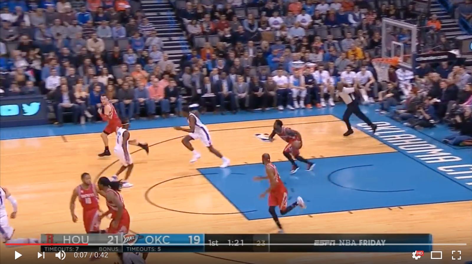 My favorite part of the pre-dunk prep: When Dekker passes the Thunder 3-point line and realizes that he’s got an uninterrupted path to the basket (see the still above). He looks at Patrick Beverley and just stays staring at him as he runs down the court, trying to will Beverley to throw him the ball. That means he had about 60 feet worth of knowing he was going to ultra-dunk it on someone. That’s a lot of planning and preparation. Sam Dekker was on his Kill Bill shit.