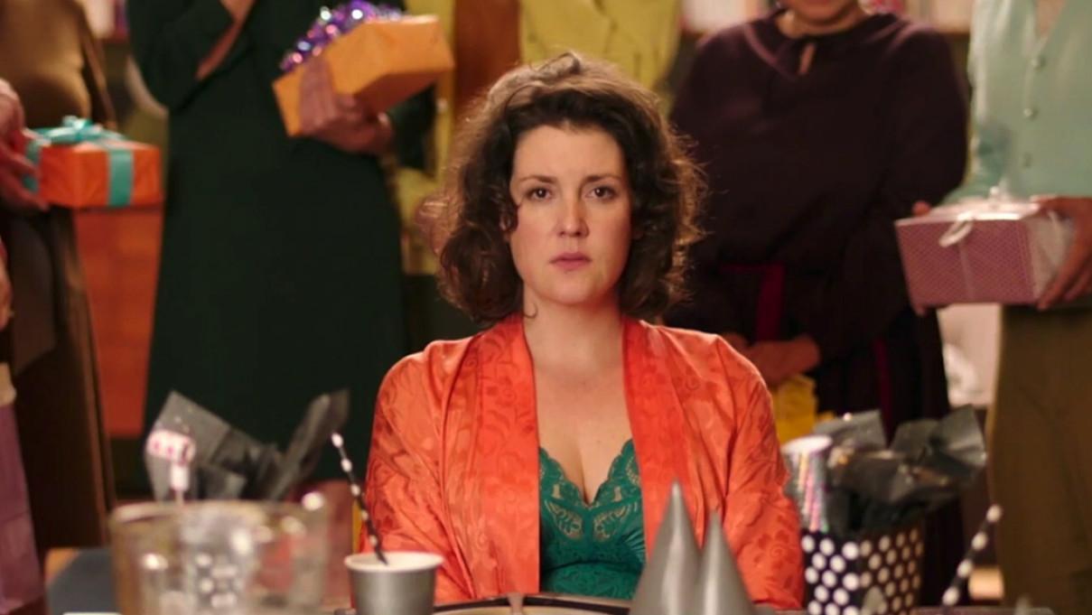 I think it’s funny, I hope. Melanie Lynskey was a gem. She’s so great. I was thrilled because there’s a scene that would always make me cackle, even watching it over and over and over again. It’s where she’s found her husband dead, her daughter has wet herself, and she’s helping her daughter get into a new costume and she has taken a shower curtain and cut three holes out of it and just kind of put it on her as a makeshift ghost. She finally consoles the daughter and says, “No, you look really scary,” after she was like, “No, I look stupid,” and the daughter just does this jump start, like, “Boo!” and it’s this big, actual scare. And she kind of does this “run along” thing and there’s a fraction of a beat and then Melanie just breaks down, and it’s just an expression of the purest grief. It makes me laugh so hard, because it’s so dark. It’s just so deeply depressing, and I think those things are funny.