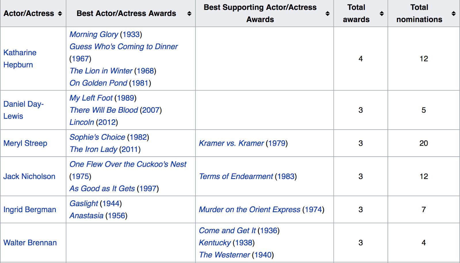 The Legacy: Actually, I’d be sort of mad, and not because I’d like to make a case for Affleck, Viggo Mortensen (who some think is this category’s real dark horse), Ryan Gosling, or Andrew Garfield. It’s more of an aesthetic historical preference. Here’s the list of actors with three or more Academy Awards.
