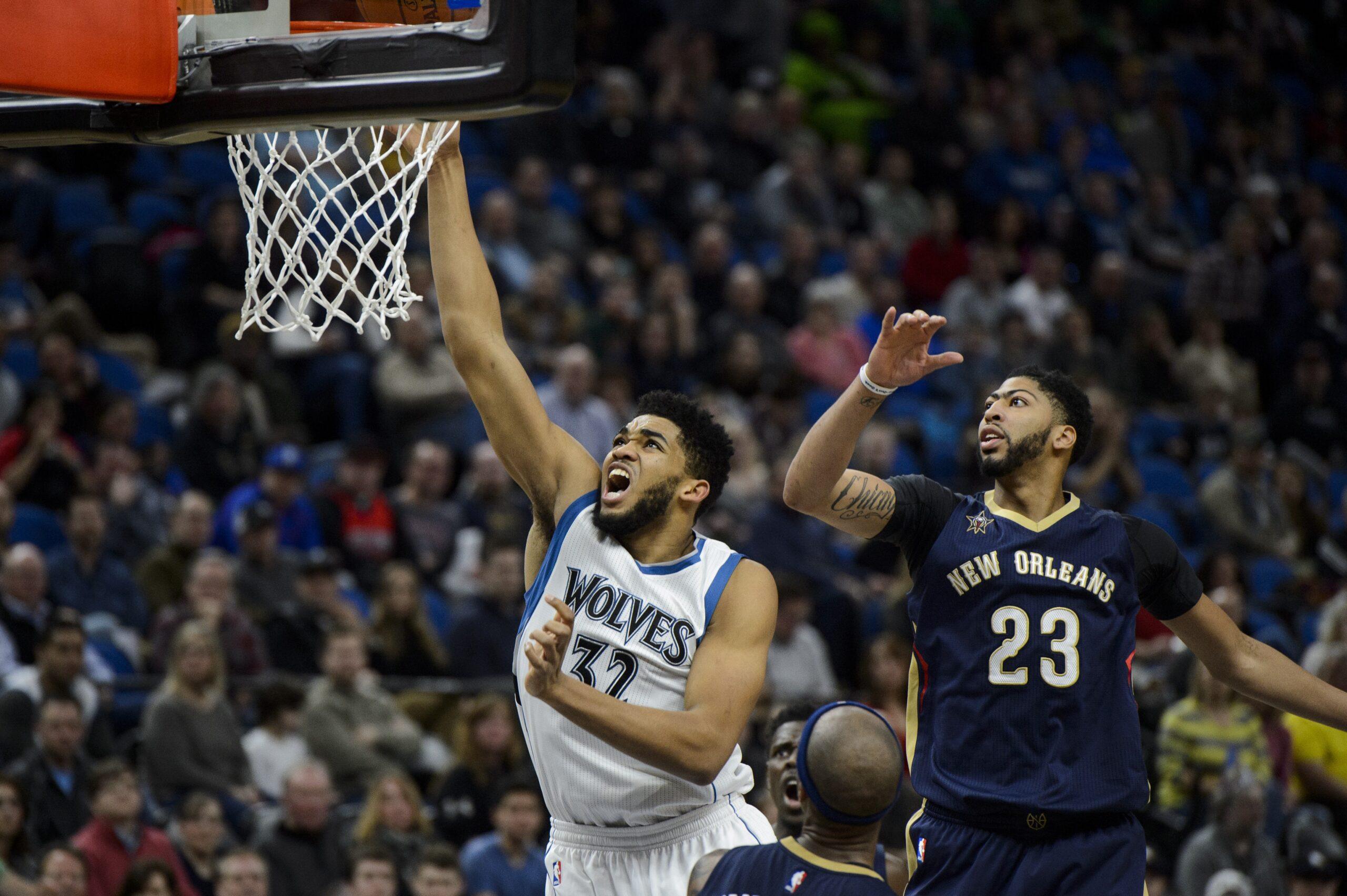 With a decrease in 3-point attempts, Towns’s percentage has surged from 30.5 percent before January 17 to 47.7 percent from that point onward. The mere threat of his shot makes him a load to handle for defenses. Towns doesn’t always need to pop to the 3-point line to be a threat. He also uses a short roll to the middle of the floor, which usually leads to loud finishes: