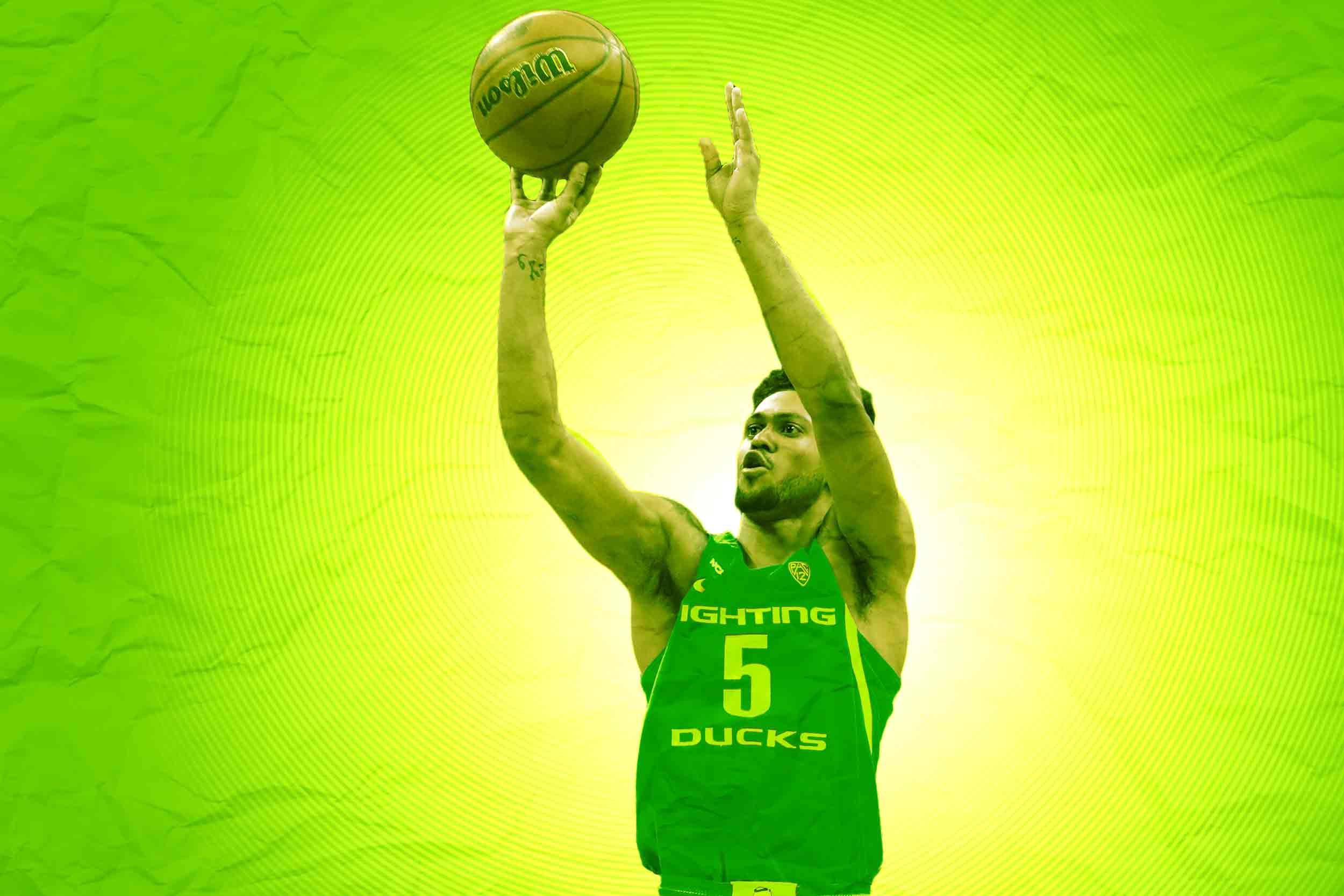 Against Kansas in the Elite Eight, he drilled six 3s on 10 attempts, finishing with 27 points to send Oregon to the Final Four.