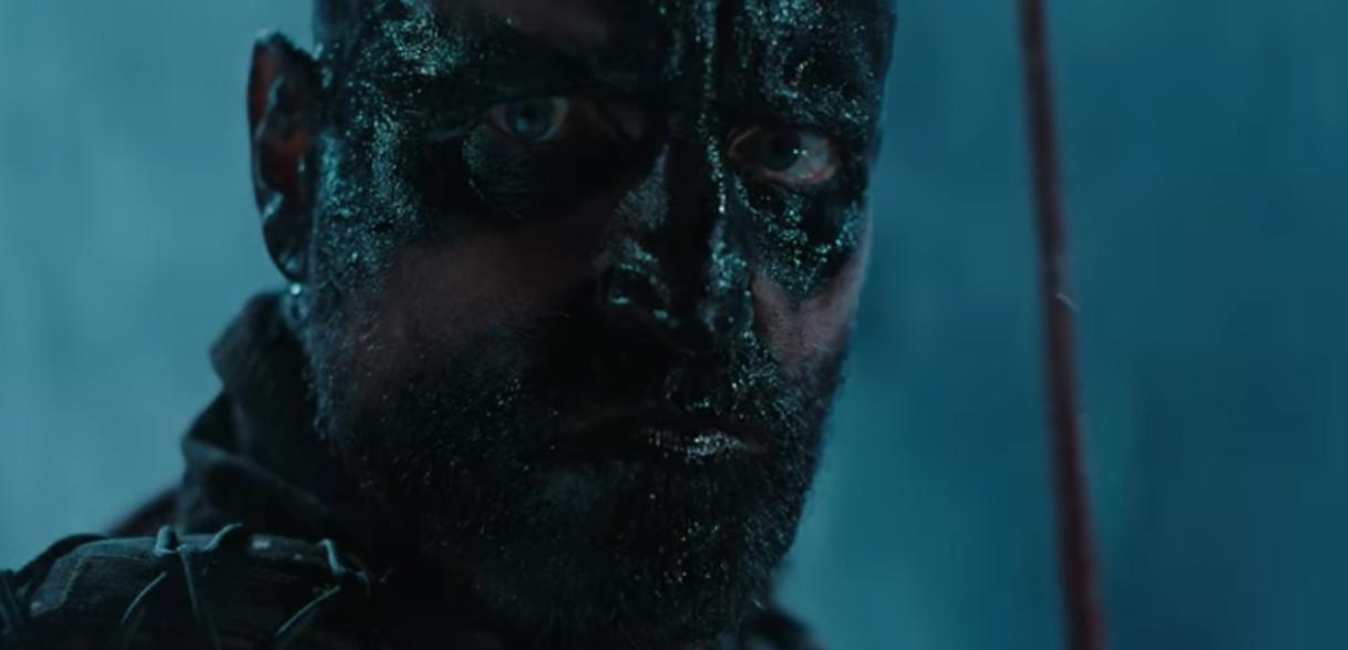 And here is how Harrelson’s Colonel is dressed up for what looks to be the movie’s climactic man-beast battle with Caesar, which takes place inside a waterfall: