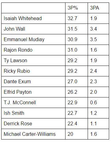 The days of nonshooters like Rajon Rondo being able to thrive at the position have come and gone. Of the point guards who have started at least 15 games in the league this season, there are only 12 who shoot less than 33 percent from 3.