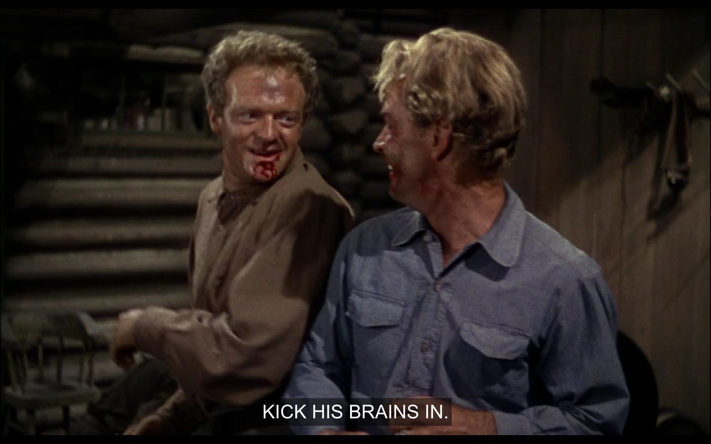 Shane, thank goodness, carries this setup to a slightly less logical but way more pleasant conclusion. For a while it’s a buddy comedy, with Shane and Starrett rapturously hacking a giant tree stump out of the ground and later joining forces for a genuinely loony and fantastic bar fight. Look at how sweet these guys are.