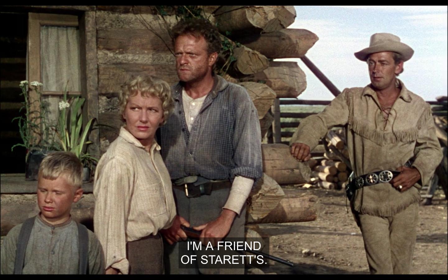 Directed by George Stevens and adapted from Jack Schaefer’s 1949 novel, Shane is shockingly gorgeous, full of sumptuous vistas and alluring desktop-wallpaper options. Alan Ladd plays your titular hero, suave and stoic and magnificently coiffed, roaming a feral and beautiful Wyoming countryside sometime after the Civil War. As the movie begins, he ambles heroically onto the modest homestead of Joe Starrett, a simple and decent and slightly over-macho man with a tremulous wife and insufferable son. The Starretts are menaced by the Ryker gang, who have an arguably legal and inarguably amoral claim to the same land, and aim to kick all the squatters and “sodbusters” out, via 1953-appropriate bursts of violence if necessary.
