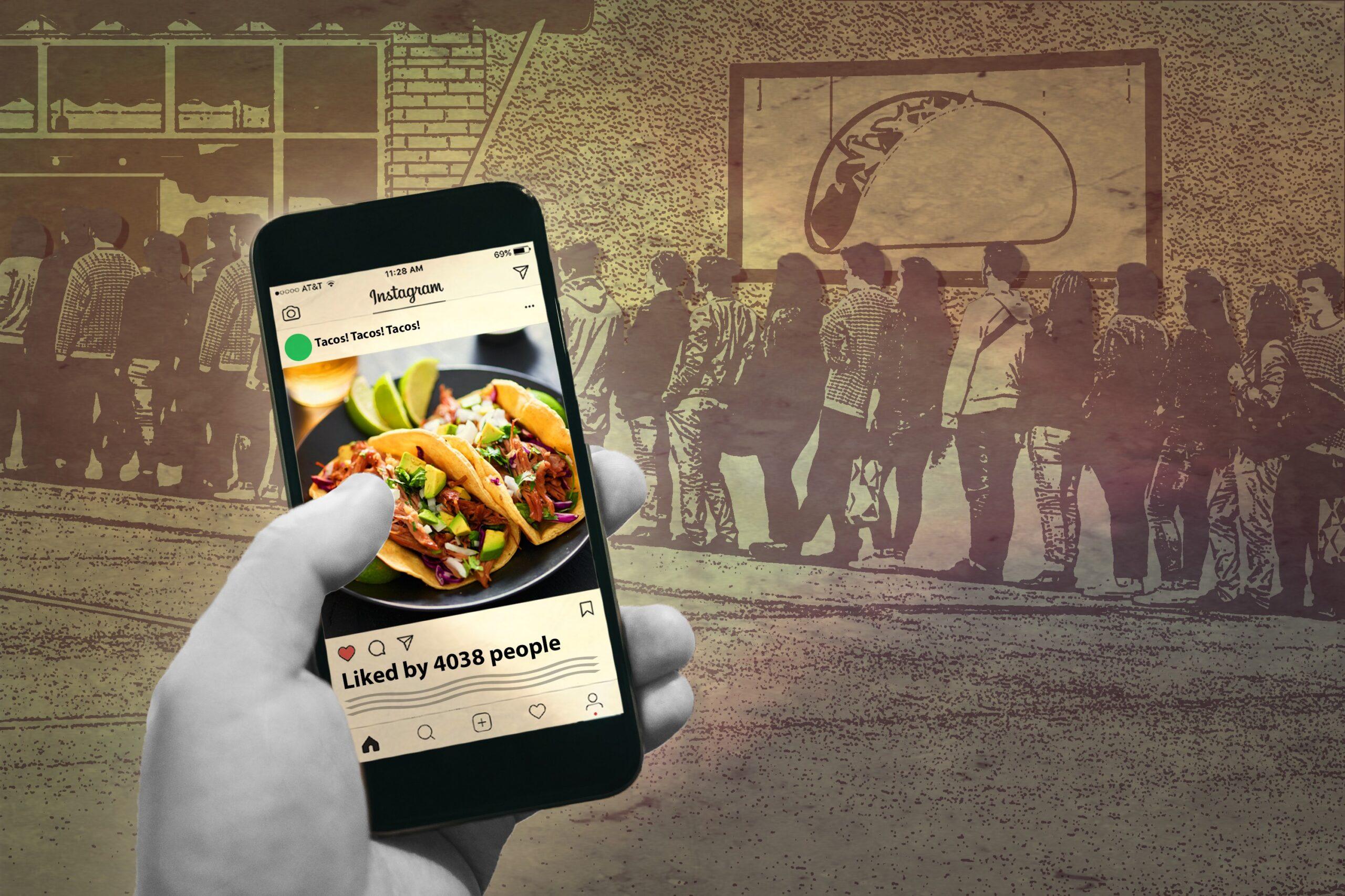 “Look at this queso,” my friend said, shoving her phone in my face. We had just finished watching a very long movie and were searching for a place to eat. She recalled seeing some yummy Tex-Mex on Instagram, and quickly pulled out her phone. I watched as an anonymous hand plucked a tortilla chip out of a basket and hovered it above a bowl of soft, white cheese topped with chorizo and avocado. The hand paused, offering its audience a couple of seconds to prepare for what was going to happen, then plunged the chip into the goo. It emerged coated in a thick, glistening, dairy-and-meat lacquer, dribbling small morsels of sausage into the bowl. The camera remained fixated on the drip, drip, drip of the cheese until the video started over. It was decided: Wherever this video originated was where we’d be eating dinner.