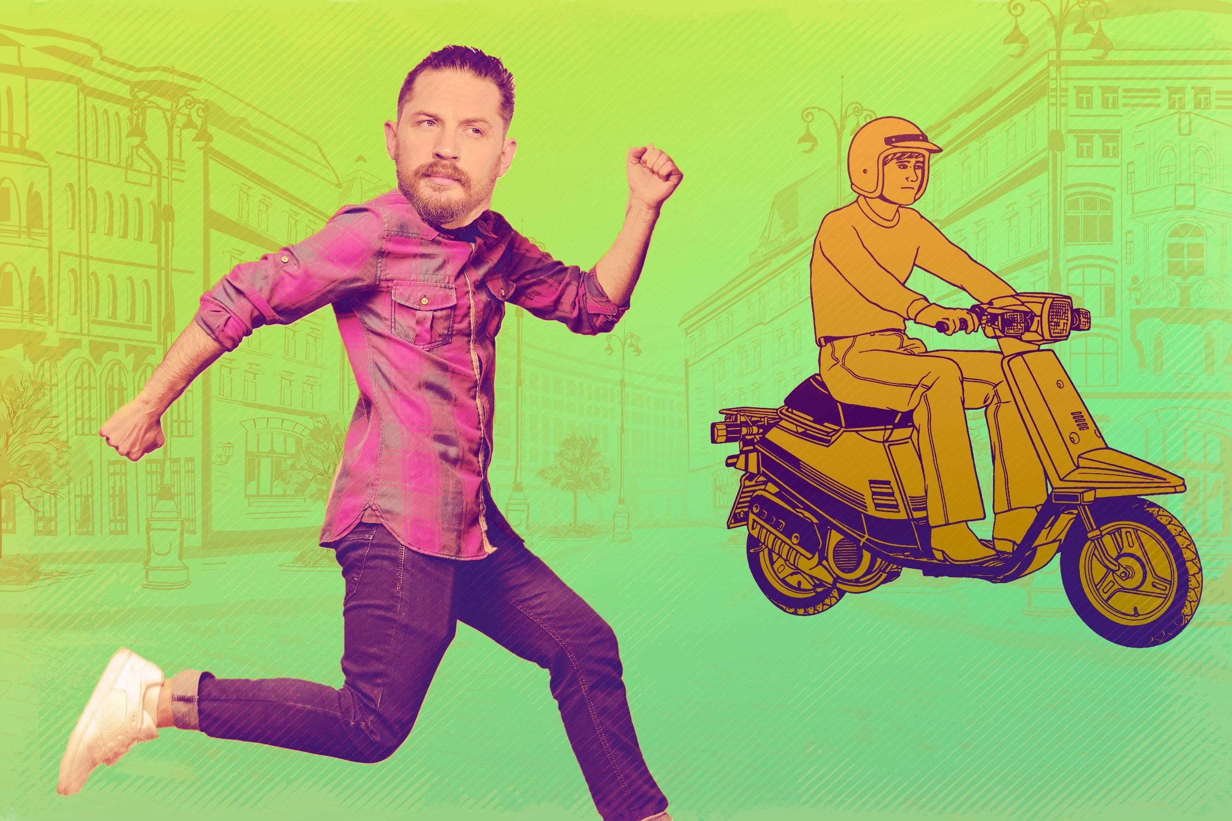 1. Did Tom Hardy know the moped was stolen? Like, was this a little-old-lady-STOP-THIEF! sort of situation? Does Tom Hardy merely harbor a deep-seated distrust of teens on rapidly moving vehicles? Maybe Hardy has a sixth sense for injustice?