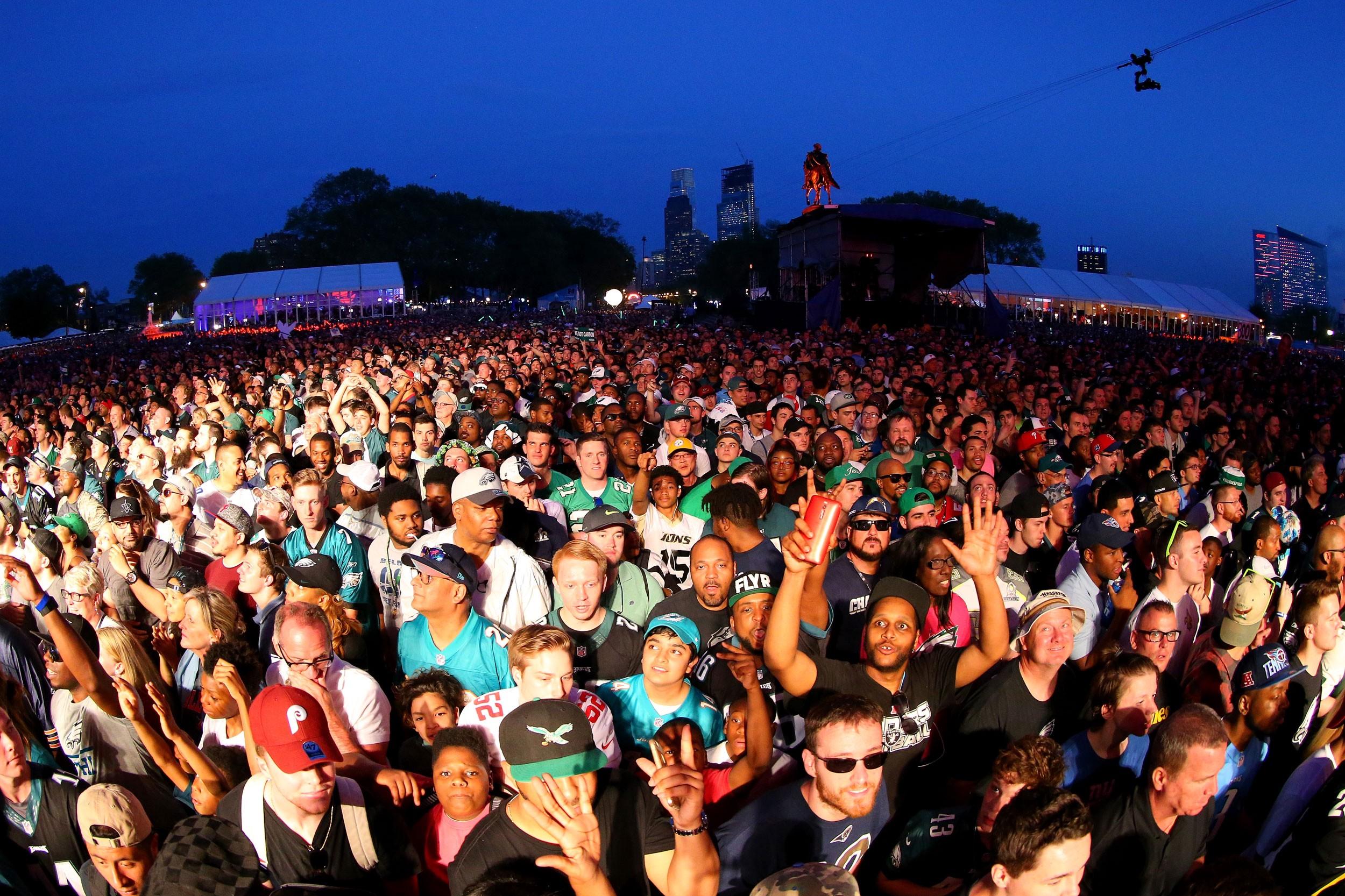 I was skeptical when the league said hundreds of thousands of fans would attend. From sports teams to presidents, people like to inflate crowd sizes, and I assumed most would balk at the idea of standing outside to watch Roger Goodell read the names of players whose NFL worth will not be known for years. But then I stood in a parade of football fans that stretched from the front of the Philadelphia Museum of Art to a patch of road that Google Maps told me was 330 yards away. The NFL’s official release claims "nearly 100,000 fans" showed up for Round 1, setting a draft record. That wasn’t even a title up for grabs in previous drafts, as each year’s potential attendance was inherently limited by the amount of seats in the host venue.