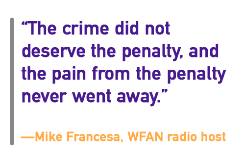 Francesa: I remember in the beginning thinking, “Boy, how stupid are these guys? They get what they deserve.” But as I came around, and we argued more on the air, and the fans poured in, I really thought there should have been more common sense. Yes, letter, [Ewing] stepped on the floor. But he had no intent of anything, he had no intent of participation, or of mayhem.