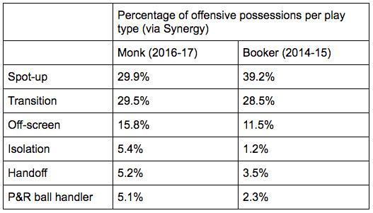 While Monk played more minutes and took more shots than Booker did two years ago, they were used in similar ways in their seasons at Kentucky: