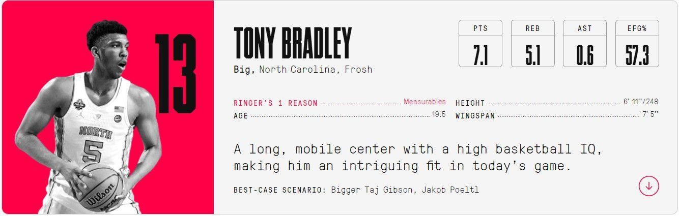 Bradley didn’t get many chances to be a featured player on offense on a veteran team that wound up winning the national title, but he showed flashes of intriguing skill when he was asked to make plays for others. He can stop short on a roll to the basket, read the floor, and hit the open man as the defense rotates:
