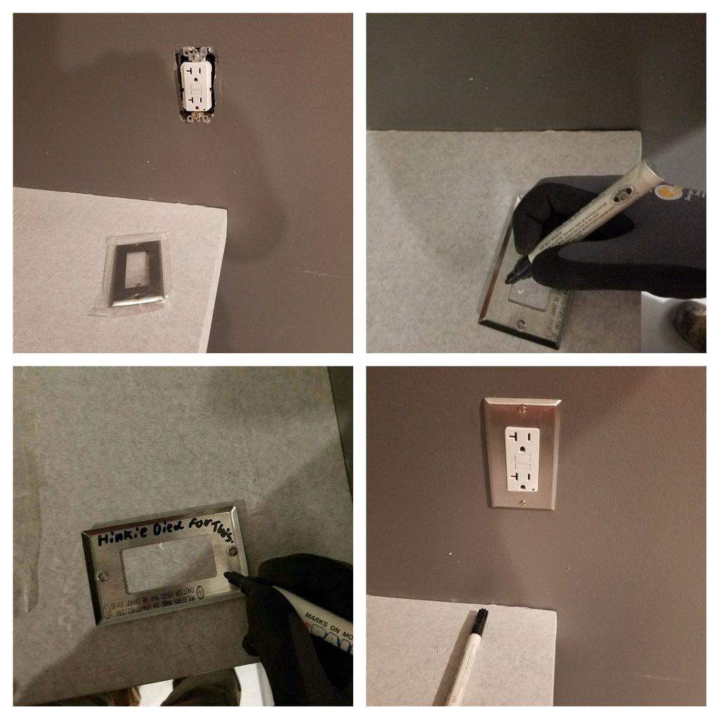 As the facility neared completion, the foreman tasked Son of Sam with "finish work," which meant installing various devices — outlet plates, light switches, dimmer switches. That kind of thing. If it’s an electrical device, it has a plate on it — most likely with more secret messages stamped on them.