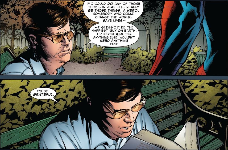 As Mephisto explains to Spider-Man, most people never get the chance to affect real change in the world, and almost all of them would be grateful for the chance. Your loved ones would always be in some sort of danger, but how awesome would it be to be able to save lives? To catch a bus with your bare hands? To climb the Washington Monument? To swing freely between skyscrapers on spider webs?