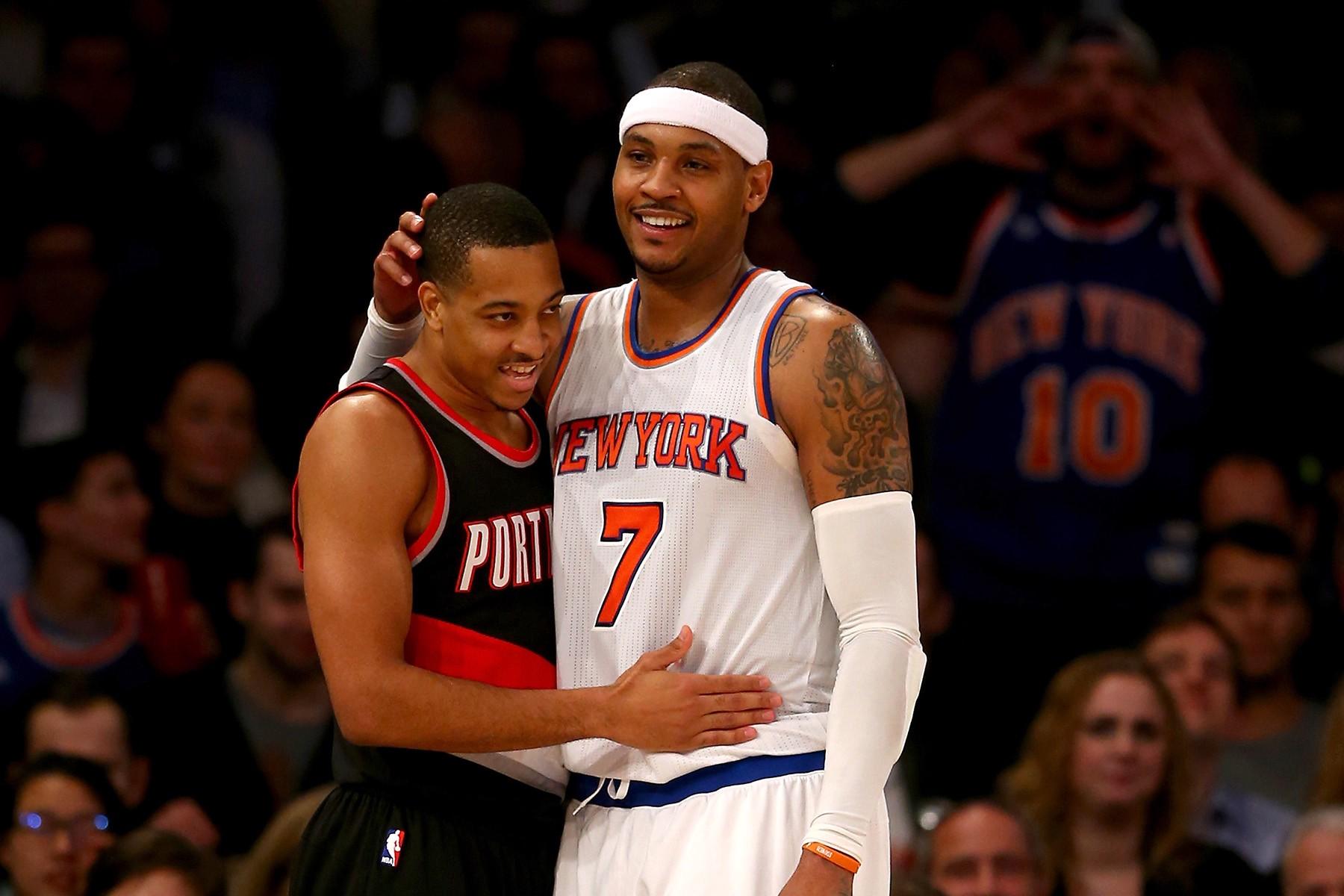 Carmelo Anthony is wanted again. After an entire season of then–Knicks president Phil Jackson telling him he doesn’t belong, Melo is feeling love from the Rockets, his own Knicks again, and the Blazers. Damian Lillard and C.J. McCollum are courting the 33-year-old. The latter posted this Instagram photo of Melo in a Blazers uniform on Sunday —