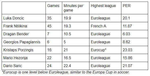 The only recent import with stats similar to Doncic is Dario Saric, and he was 21 in his final season overseas. Doncic is 18, and he still has one more year in Spain before he’s draft eligible. When Saric was 18, he was still competing for junior teams and had played in only four Euroleague games.
