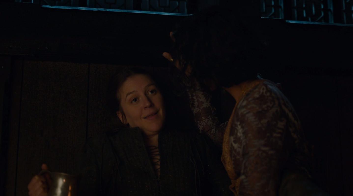 To your point — though we know very little of Wolkan, what we do know is heartening. He looked truly pained when Ramsay suggested feeding Myranda’s corpse to the hounds. He was visibly terrified when Ramsay stabbed Roose. And when Ramsay demanded that Lady Walda, who had just given birth to a son, be brought to him, Wolkan said she was "resting" as a way to forestall her death. It didn’t work. I think Wolkan is probably a good guy.