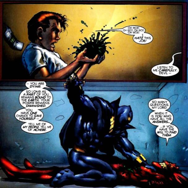 Oh Christ yes. If it were a best-of-seven series, Batman might take a game off of Black Panther but only because the league (that’s me) couldn’t have a sweep in the finals. I said earlier that Batman used a kryptonite bonding agent and a mech suit to fold Superman like a lawn chair, and that was true. But here’s the thing: Black Panther put the devil on his ass and then ripped said devil’s heart out with his bare hands, all in about five seconds. (The devil is technically called "Mephisto" in the Marvel Universe, but that’s really just licensing.)
