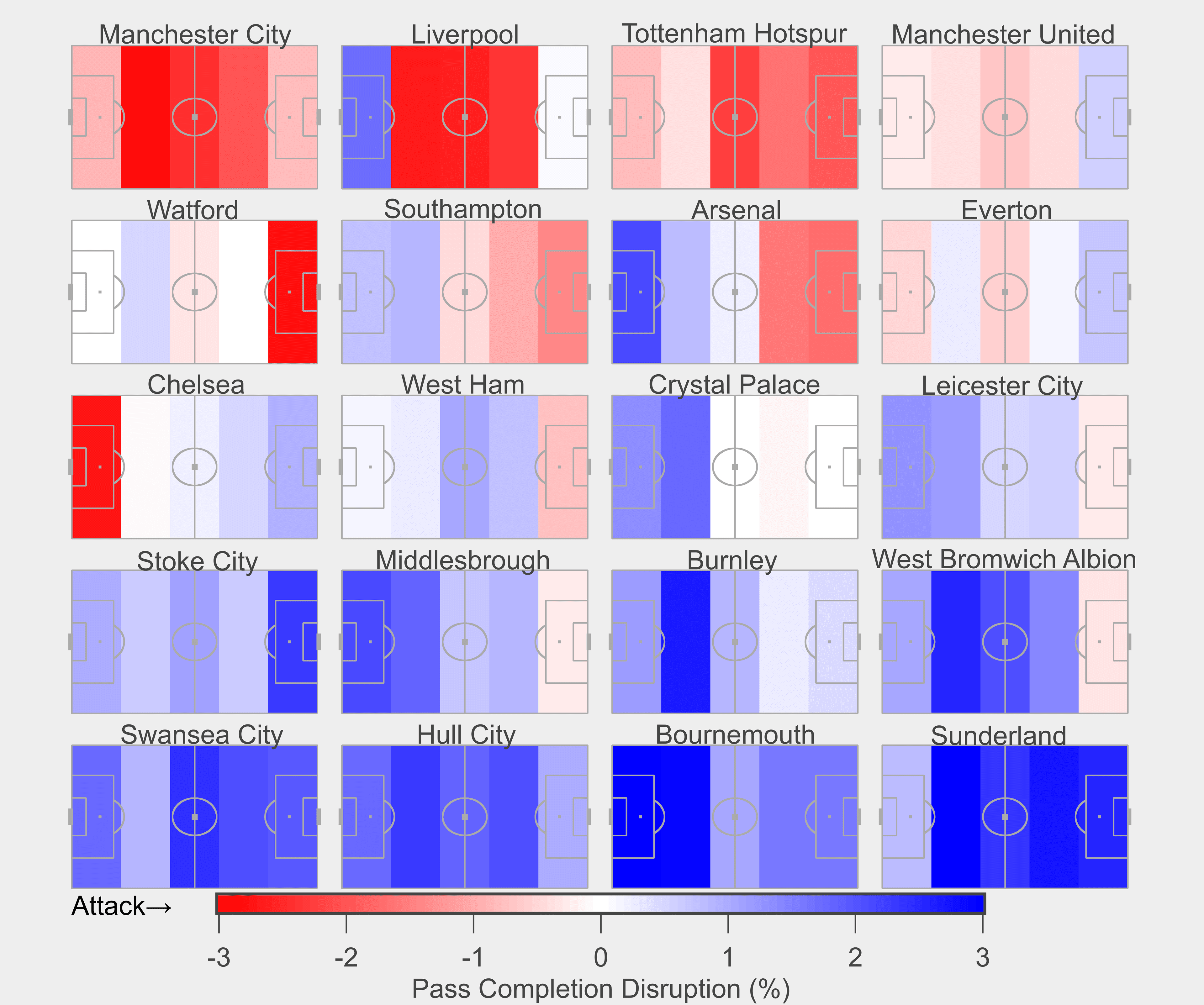 The numbers bear out the stark difference between City and Chelsea. At Statsbomb.com, Will Gürpınar-Morgan found that teams simply couldn’t pass the ball against Manchester City, no matter where on the field they were. Chelsea, on the other hand, were happy to concede passes until you reached their final third, and then they simply shut it down. These are last year’s stats, but the same basic principles apply this season: