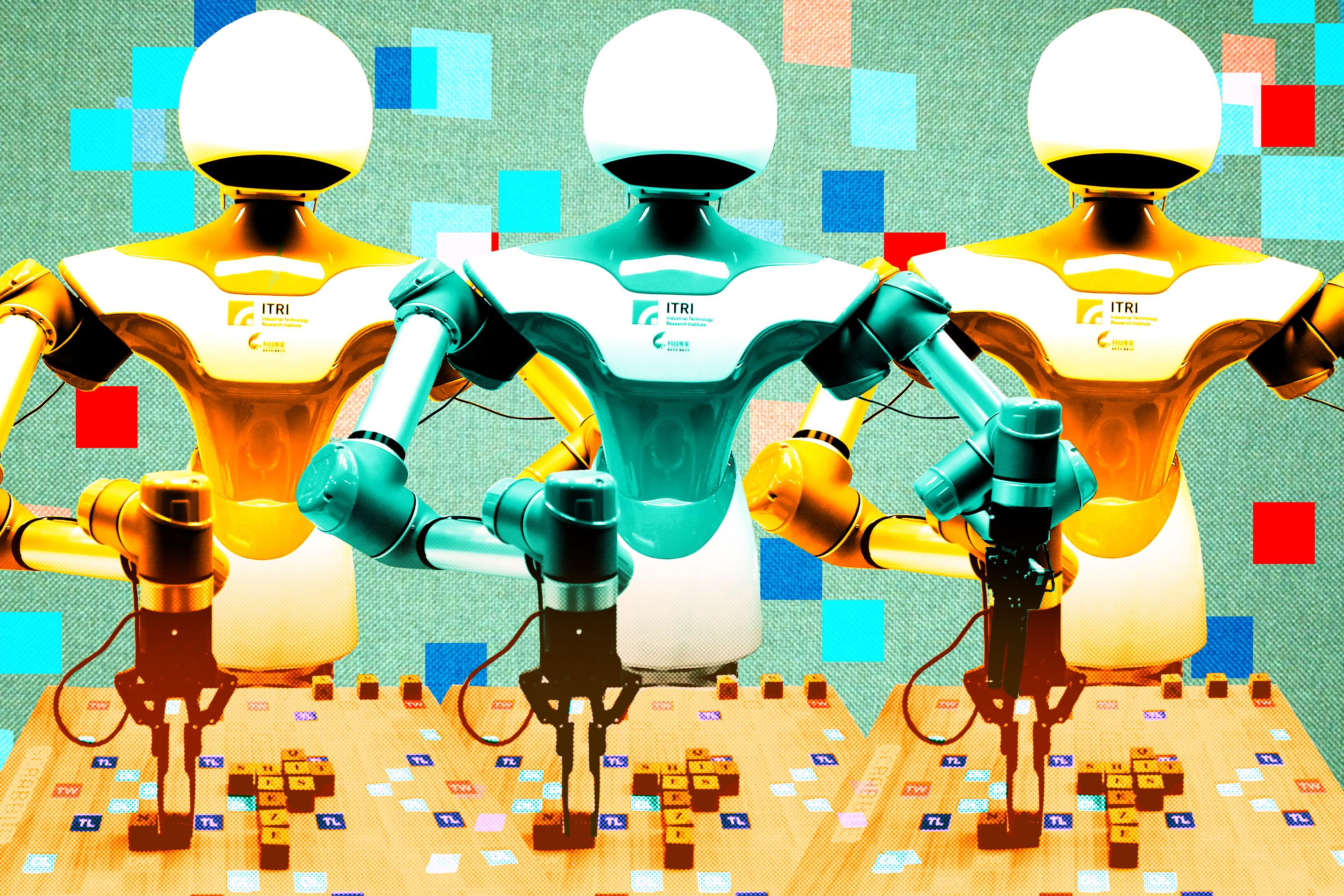 The moment I played my first word against the Industrial Technology Research Institute’s “intelligent vision system” (IVS)—a plastic torso with spindly arms and an oblong head the size of a basketball—it became immediately apparent that I had underestimated its abilities. Sure, IVS had to use a specially made, enlarged version of the board that replaced the game’s dainty wooden letter tiles with blocks, and it only knew I was finished with my turn once I pressed a button labeled “Finished” on an iPad to my right. But it clearly knew its stuff.